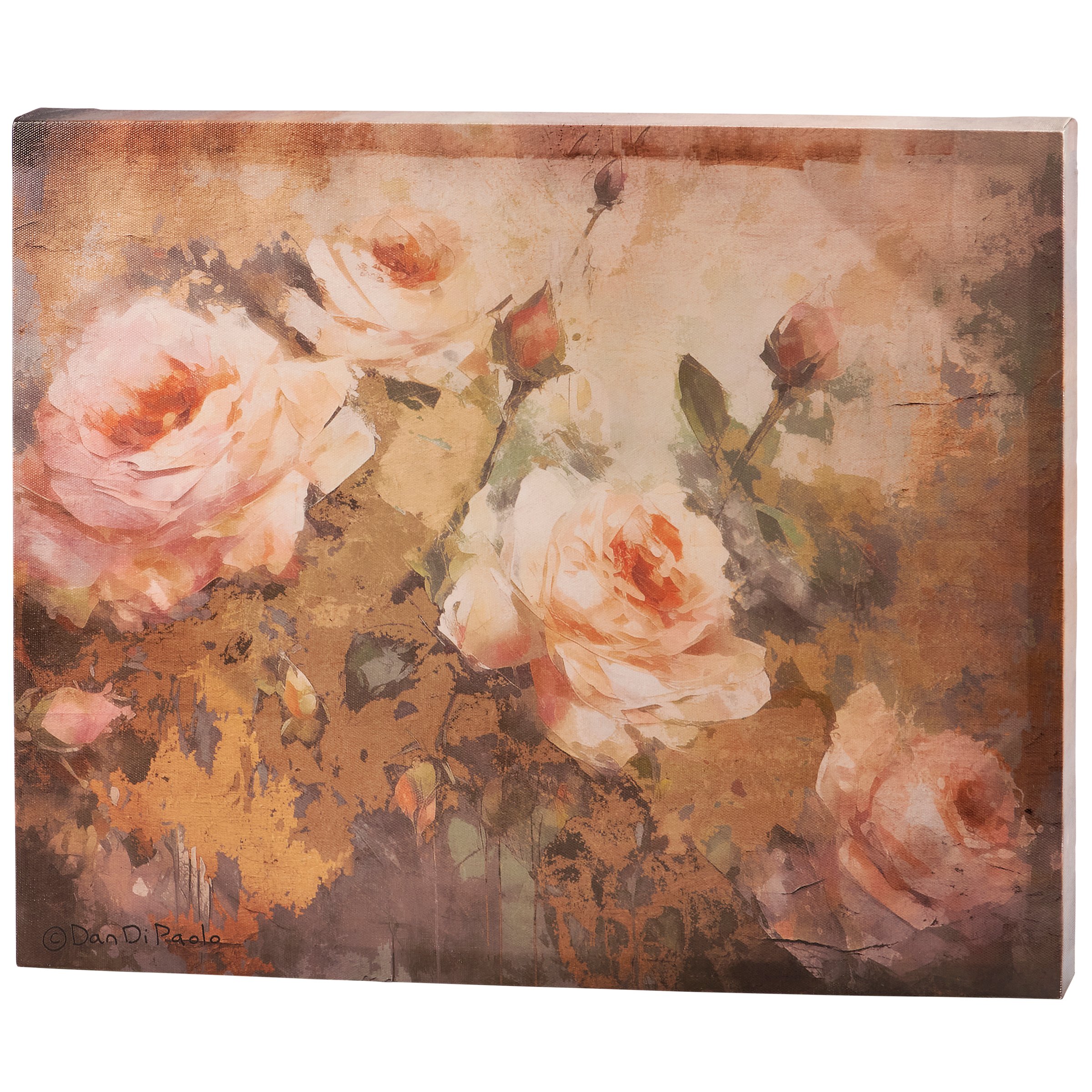 A canvas wall art piece from our Botanical Collection displaying attractive art of tea roses in an abstract art style. Tea roses design is replicated from original artwork with rustic details for an aged aesthetic. Our Tea Roses canvas wall art is easy to hang via attached hangers on the back. A rustic floral-themed home accent perfect for everyday display.