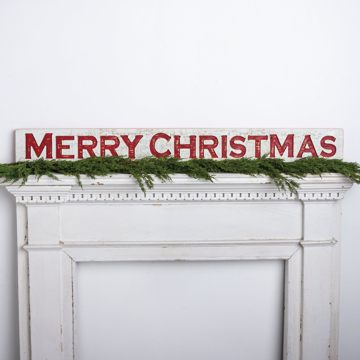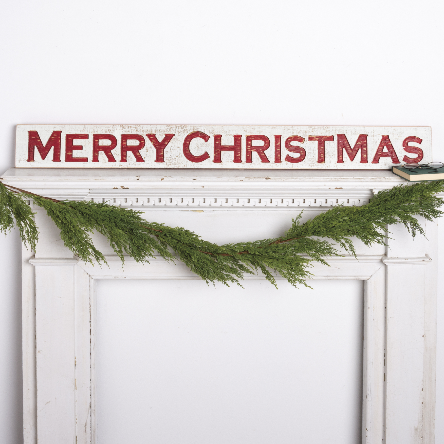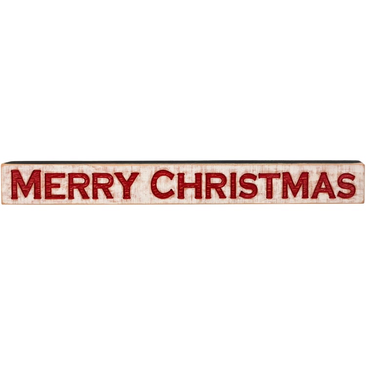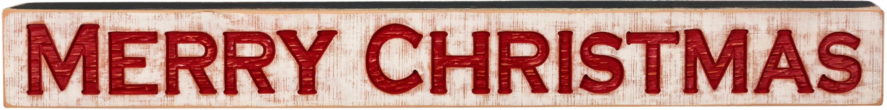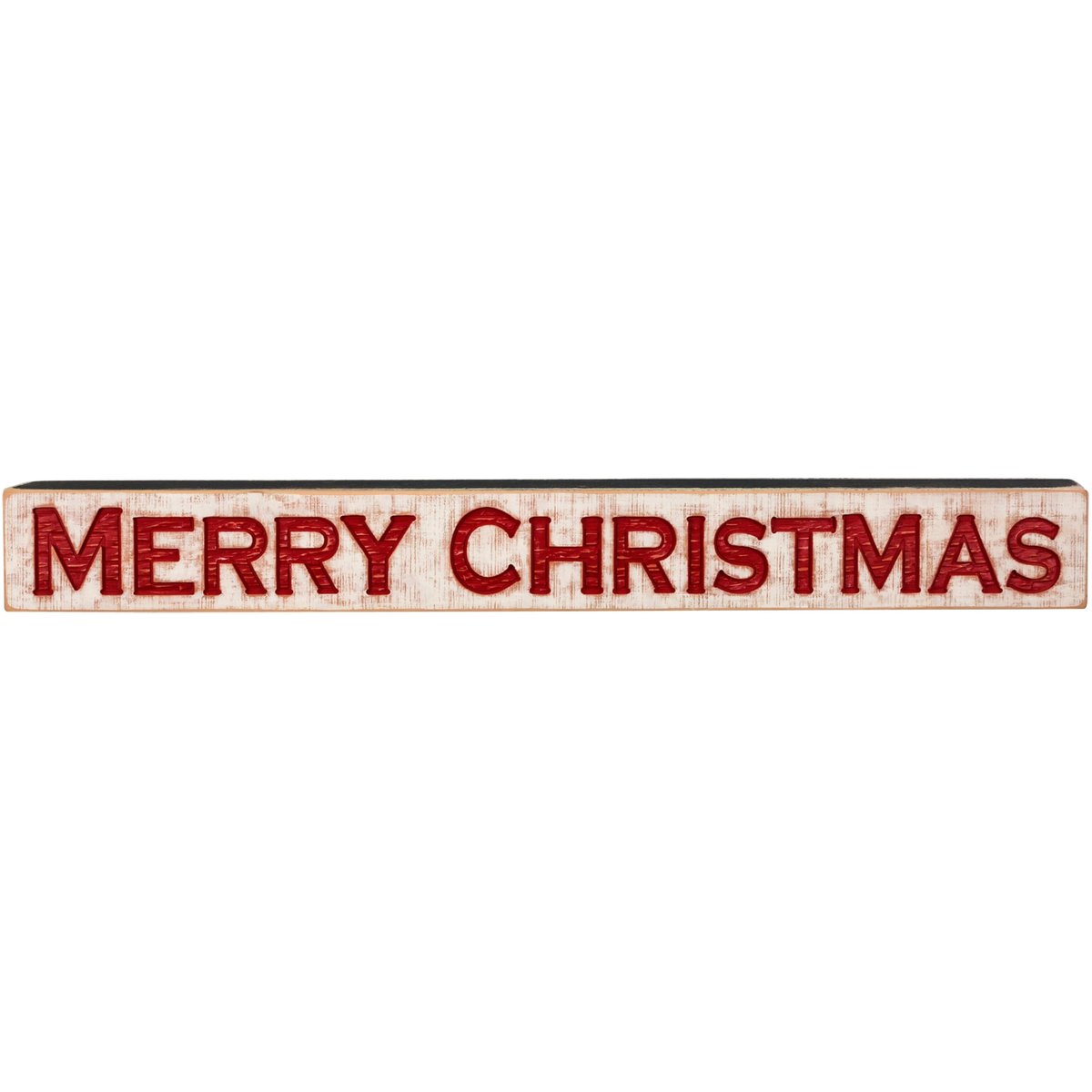 A distressed wooden sign featuring a carved "Merry Christmas" sentiment in a festive palette to complement well with existing decor or other holiday decorations for the season. Easy to hang or can free-stand alone.