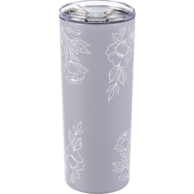 A 20 oz stainless steel coffee tumbler from our Empowerment Collection displaying a full wrap-around design of elegant flowers with inspirational "Empower Inspire Uplift" sentiment. Our Empower Inspire Uplift coffee tumbler is insulated to keep beverages hot for 4 hours or cold for 6 hours and includes a plastic lid with rubber seal. Hand-wash only; do not microwave. BPA free. A portion of the proceeds from the sale of this Benefit Item will be donated to ASSETS, a non-profit organization focused on transforming communities by increasing business ownership among women and people of color.
