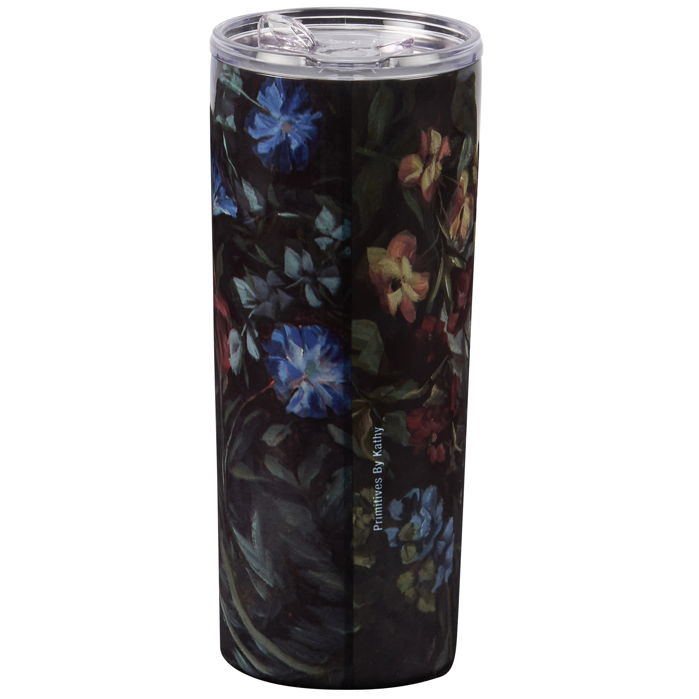A 20 oz stainless steel coffee tumbler from our Moody Collection displaying a full wrap-around design of stylish hand painted florals in a deep color palette. Design is replicated from original artwork hand painted in a unique watercolor style. Our Moody Floral coffee tumbler is insulated to keep beverages hot for 4 hours or cold for 6 hours and includes a plastic lid with rubber seal. Hand wash only; do not microwave. BPA free. A stylish accessory perfect for on-the-go or at home use.