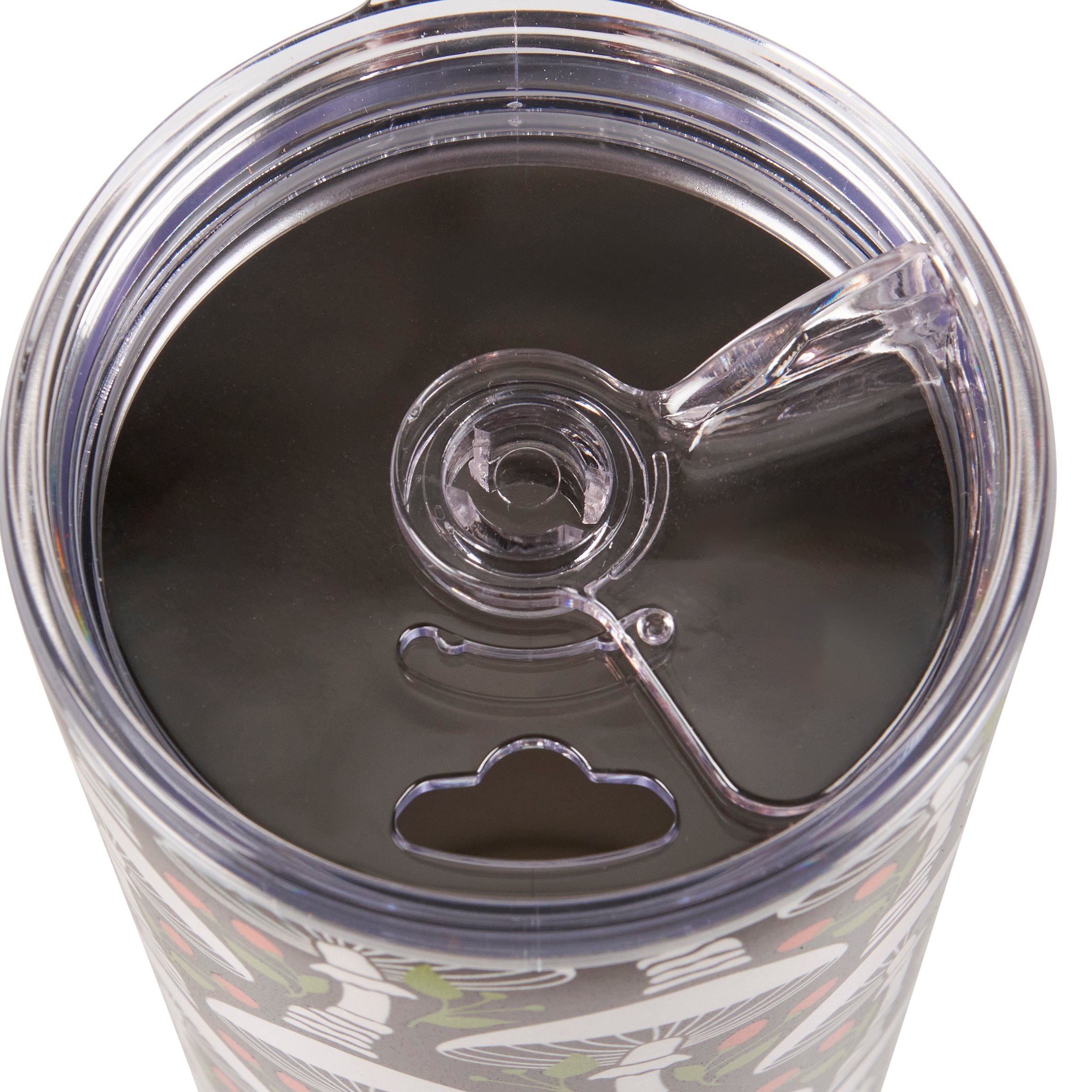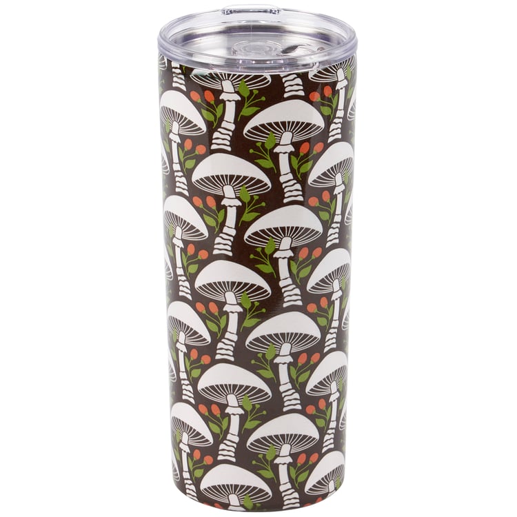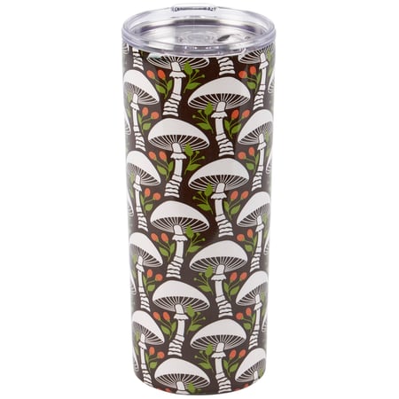 Give anyone that steps into personal space a vibe check with this 20 oz stainless steel coffee tumbler displaying a full wrap-around design of earthy mushrooms in a bold color palette perfect for a chill everyday accessory. Questionables insulated tumblers keep beverages hot for 4 hours or cold for 6 hours and includes a plastic lid with rubber seal. BPA free tumbler is hand wash only; do not microwave. Our Mushrooms coffee tumbler is an everyday accessory with down-to-earth style perfect for staying caffeinated on-the-go and at home.