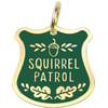 A high quality, hard enamel pet charm lending a "Squirrel Patrol" sentiment. Features gold metal split ring to attach to a collar. Our Squirrel Patrol dog tag collar charm comes attached to a dog backer card. Part of our best-selling Pet Collection.