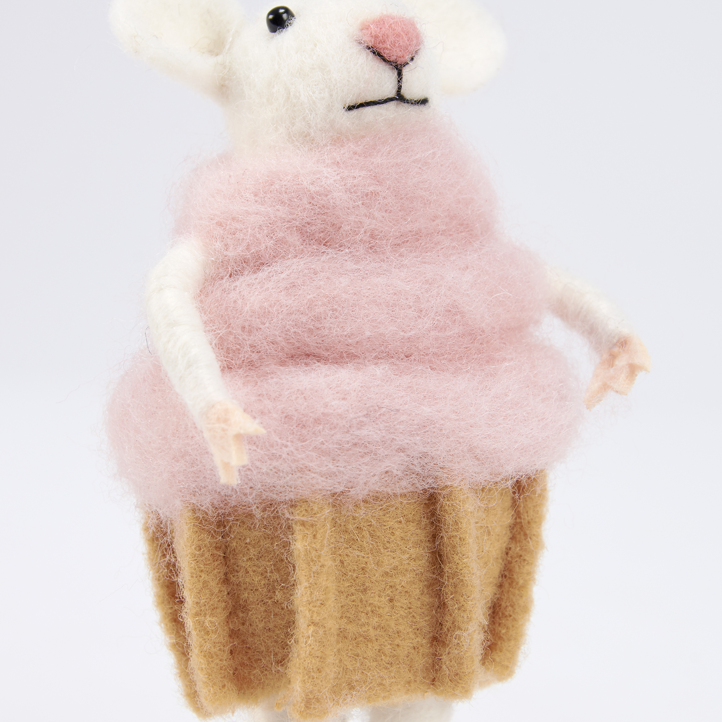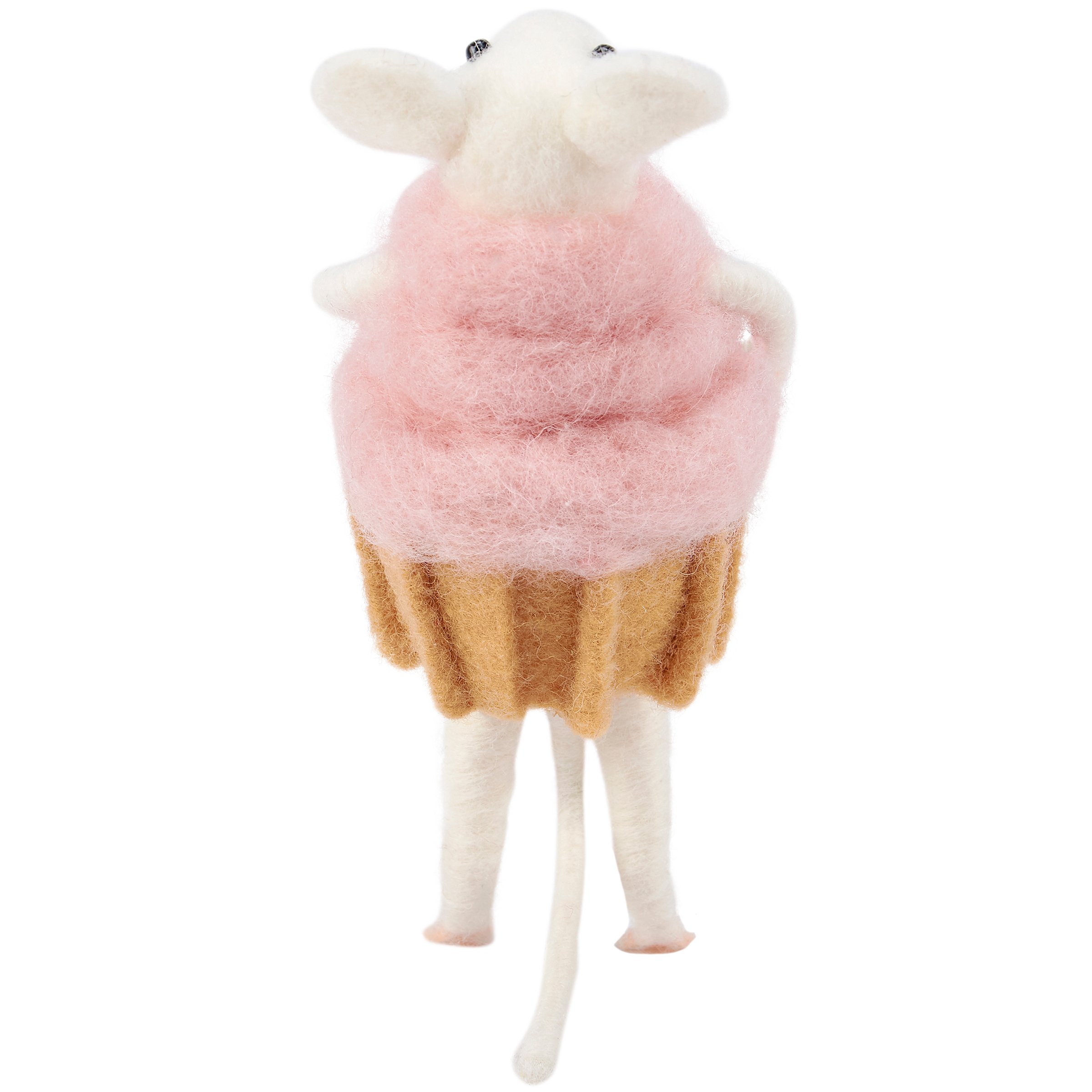 A felt critter from our Felt Collection displaying a happy mouse with a baking inspired cupcake design perfect for adding character to any kitchen. Mouse critter features cute handmade details including layered felt for the cupcake icing. Our Cupcake Mouse critter is designed to free-stand on flat surface for display. Contains small parts; this is not a toy. A fun baking-themed home accent that displays well alone or as a collection with other critters.