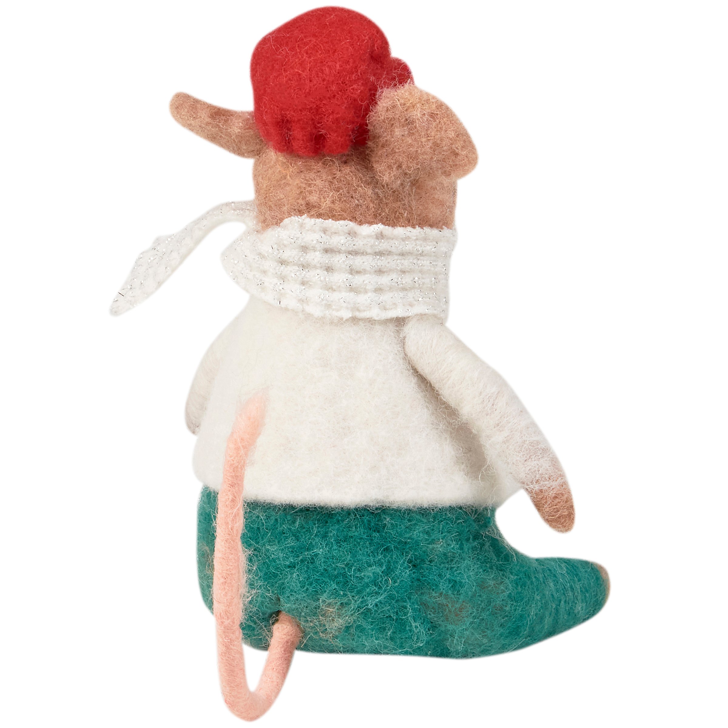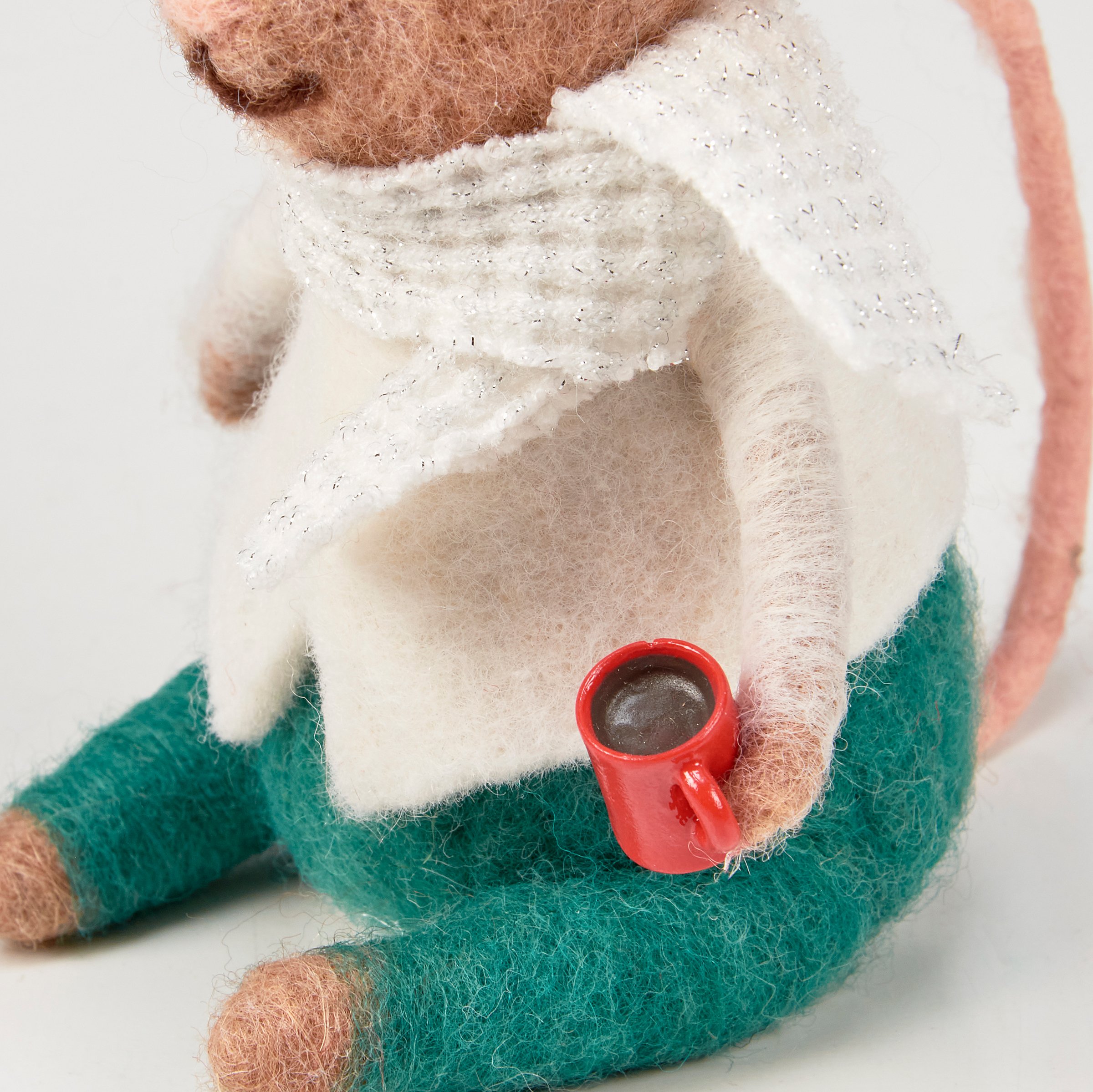 A felt critter displaying a mouse holding a red mug of hot cocoa that coordinates well with décor from our Christmas Collection. Mouse critter features cute accents including a festive scarf and hat. Our Hot Cocoa Mouse critter is designed to hang via included hanger or free-stand on a flat surface for display. Contains small parts; this is not a toy. A cute seasonal home accent to display alone or as a collection with other seasonal critters.