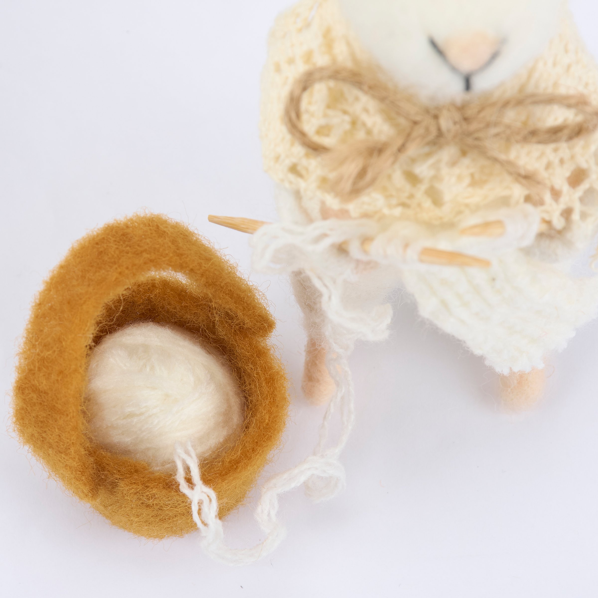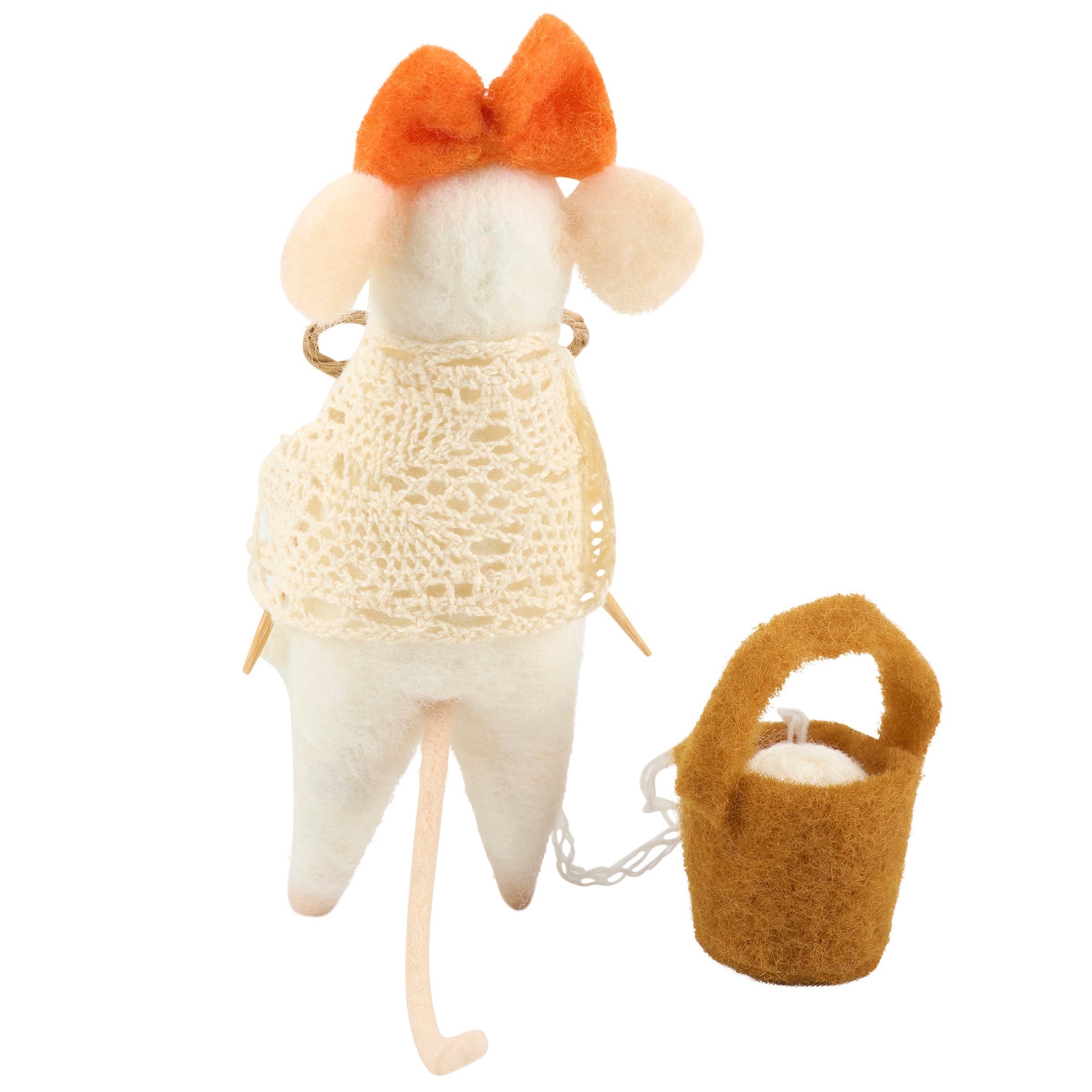 A felt critter from our Felt Collection displaying a happy mouse with a knitting inspired design perfect for adding character to any display. Knitting mouse critter features cute handmade details including wooden knitting needles in hands with yarn leading to a felt basket. Our Knitting Mouse critter is designed to free stand on flat surface for display. Contains small parts; this is not a toy. A cute knitting themed home accent that displays well alone or as a collection with other critters.