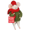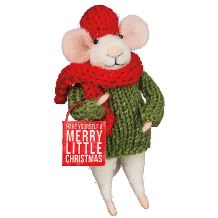 A Christmas-themed felt critter lending a "Have Yourself A Merry Little Christmas" sentiment, knit sweater, hat, and scarf detail, and clear filament hanger for easy decorating. Great to display with other critter styles. This is not a toy.