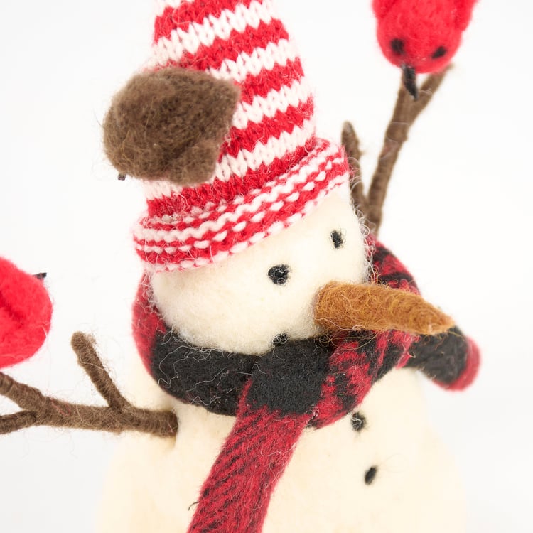 A felt critter from our Christmas Collection displaying a happy snowman and winter birds design perfect for adding character to any seasonal display. Snowman critter features cute handmade details including knit hat and scarf detail as well as felt birds on sturdy wire branch arms. Our Nature Snowman critter is designed to free-stand on flat surface for display. Contains small parts; this is not a toy. A fun Christmas home accent that displays well alone or as a collection with other critters.