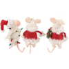 A felt critter set from our Christmas Collection including three white mice with two dressed like Mr. and Mrs. Claus and one wrapped up in decorative Christmas lights. Mice critters feature cute accents including small bulb ornament and wreath with felt berry details. Our Claus Family Mice critter set is designed to hang via included hanger or free-stand as a set or separately on flat surface for display. Contains small parts; this is not a toy. A cute set of seasonal home accents to display on their own or as a collection with other seasonal critters.