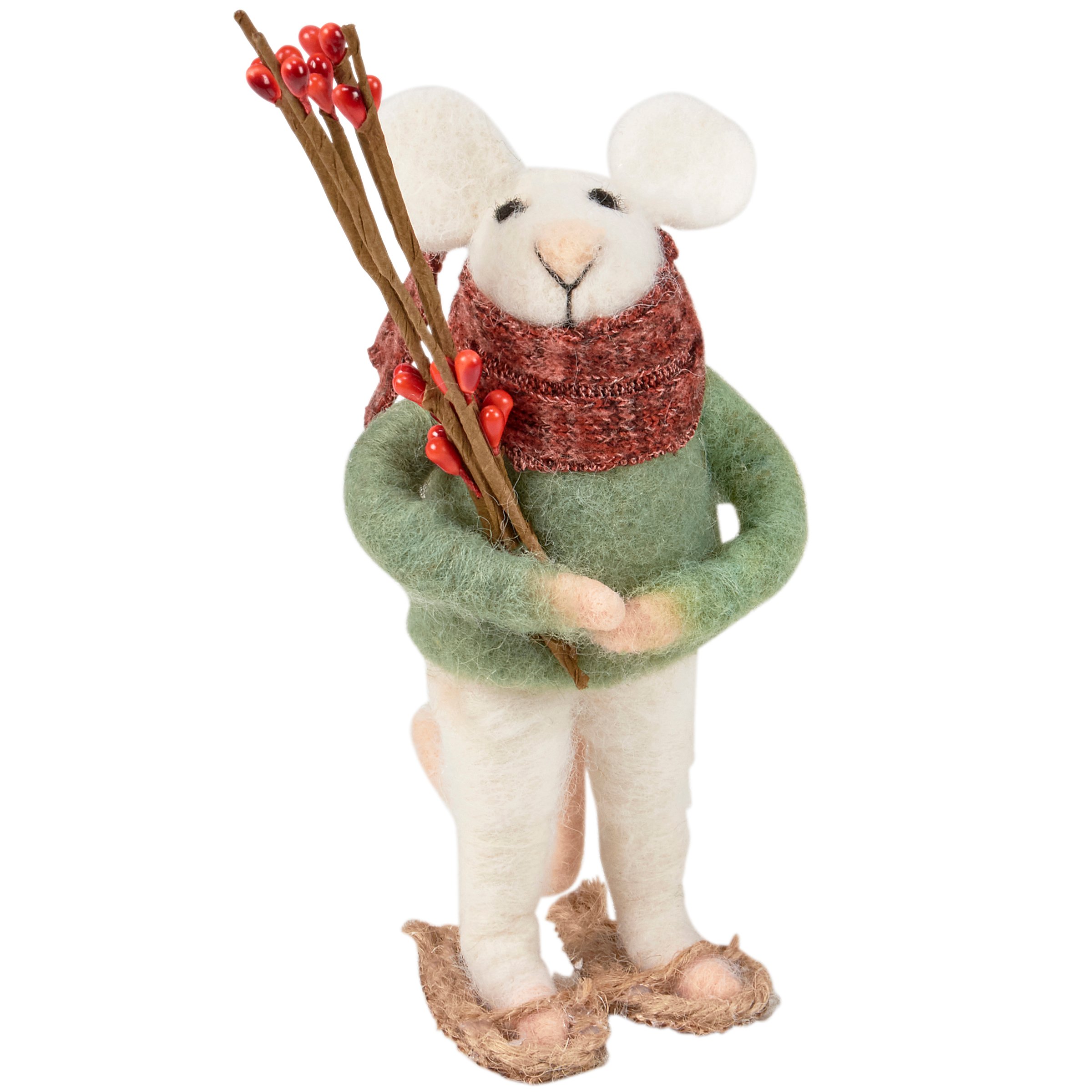 A felt critter displaying a mouse wearing snowshoes and a winter scarf that coordinates well with décor from our Christmas Collection. Mouse critter features cute accents including woven jute for each snowshoe. Our Snowshoe Mouse critter is designed to hang via included hanger or free-stand on a flat surface for display. Contains small parts; this is not a toy. A cute seasonal home accent to display alone or as a collection with other seasonal critters.