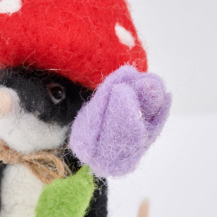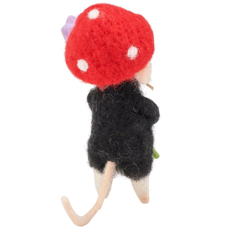 A felt critter from our Cottagecore Collection displaying a charming mole with a garden inspired design perfect for adding character to any space. Mouse critter features cute handmade details including a felt tulip and felt mushroom hat with jute tie. Our Tulip Mole critter is designed to free-stand on flat surface for display or hang for display via the attached hanger. Contains small parts; this is not a toy. A fun garden-themed home accent that displays well alone or as a collection with other critters.