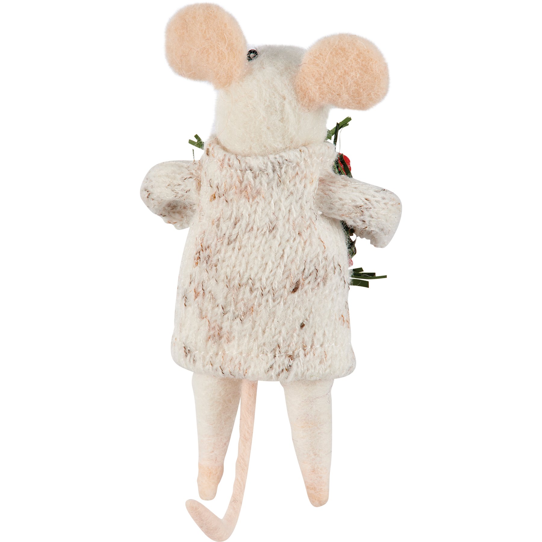 A felt critter from ourĀ Christmas Collection displaying a mouse wearing a sweater and holding a holly wreath. Critter features faux wreath and knit fabric details Our Wreath Mouse critter is designed to free-stand on flat surface. A cute seasonal home accent to display alone or as a collection with other critters. Contains small parts; this is not a toy.