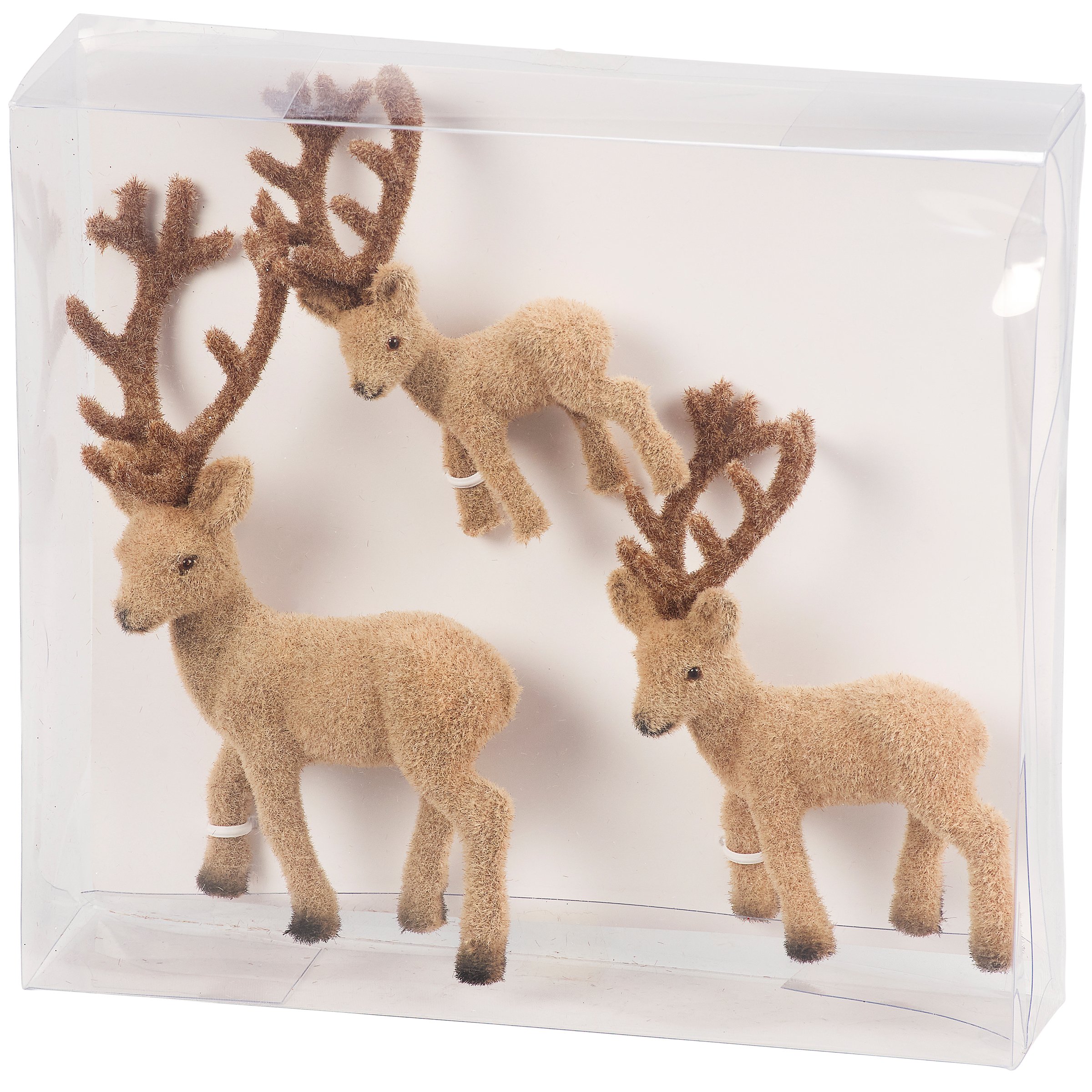 A set of decorative deer figurines from our Christmas Collection featuring 3 different sized stag designs. Deer figurines feature flocked finish for added texture. Our Brown Stags deer figurine set is ideal for a vintage seasonal home accent and complements well with other pieces in the collection to create a cohesive display.