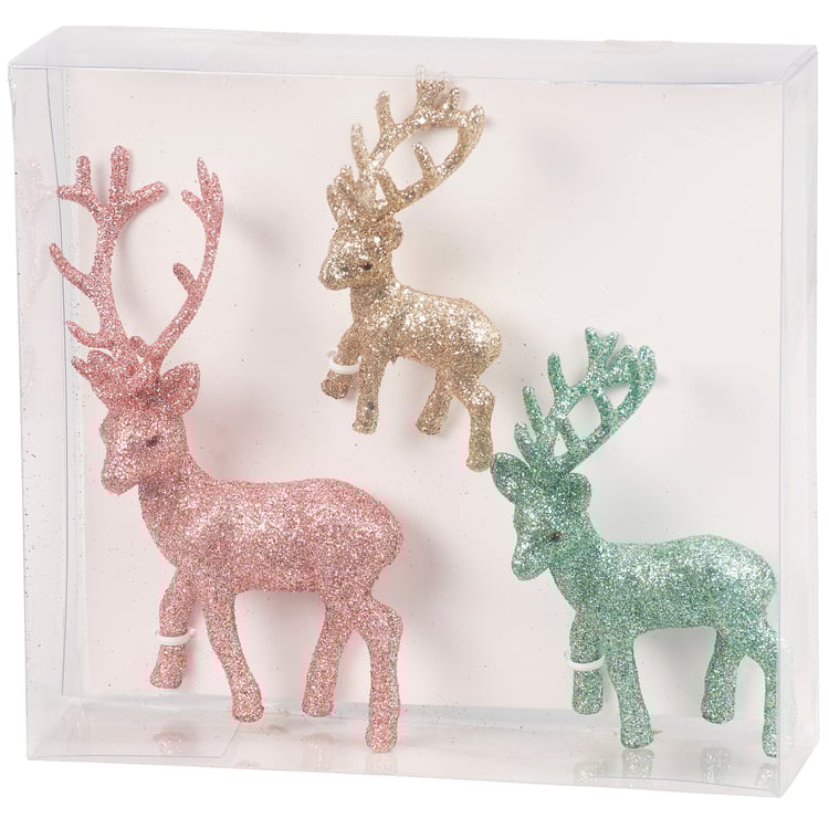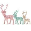A set of decorative deer figurines from our Christmas Collection featuring 3 different sized stag designs with individual pastel color glitter finishes for added retro style. Our Pastel deer figurine set is ideal for a retro seasonal home accent and complements well with other pieces in the collection to create a cohesive display.