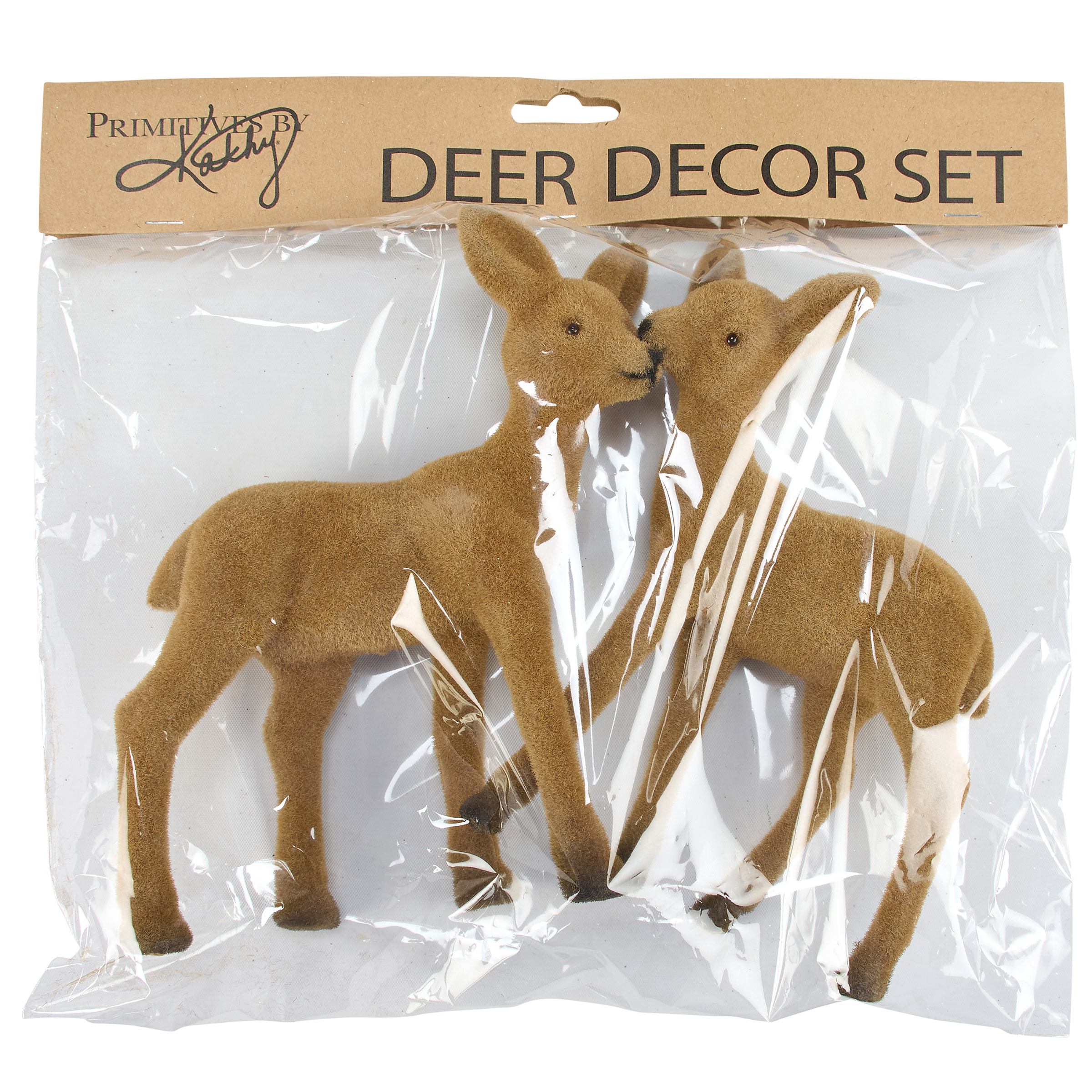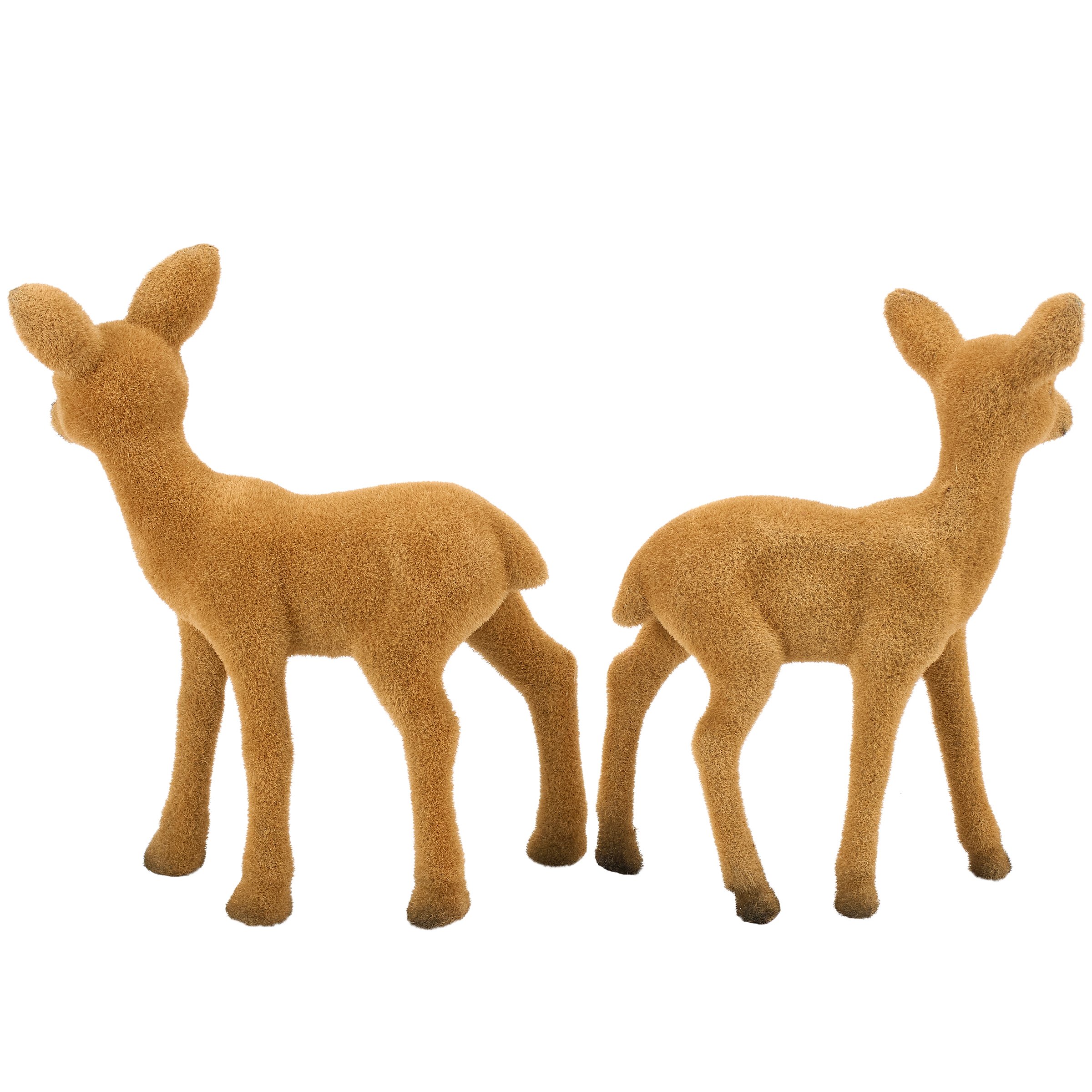 A set of decorative deer figurines from our Christmas Collection featuring 2 coordinating fawn designs. Deer figurines feature flocked finish for added texture. Our Twin Fawns deer figurine set is ideal for a vintage seasonal home accent and complements well with other pieces in the collection to create a cohesive display.