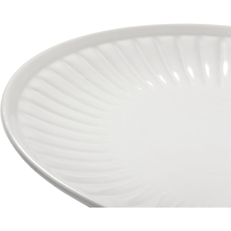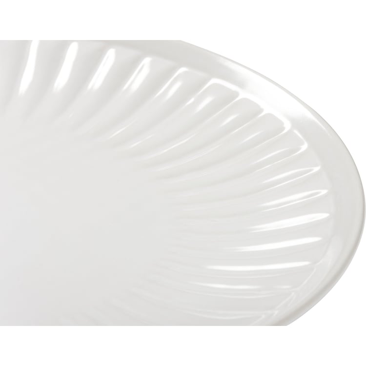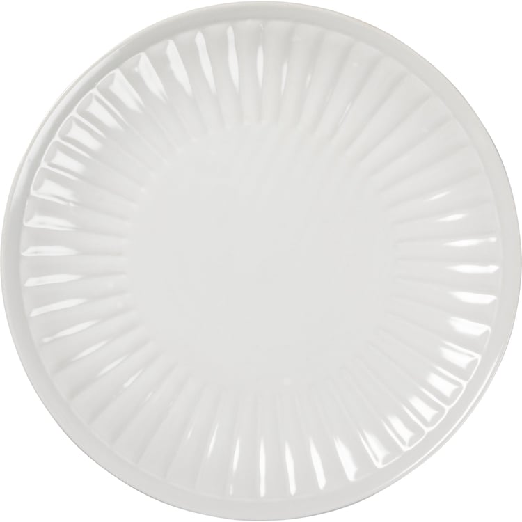 A white stoneware fluted dinner plate from our Tabletop Collection featuring ribbed texture to add interest. Microwave, oven, dishwasher and food safe. This item makes a perfect addition to a farmhouse aesthetic and coordinates well with other pieces in collection!