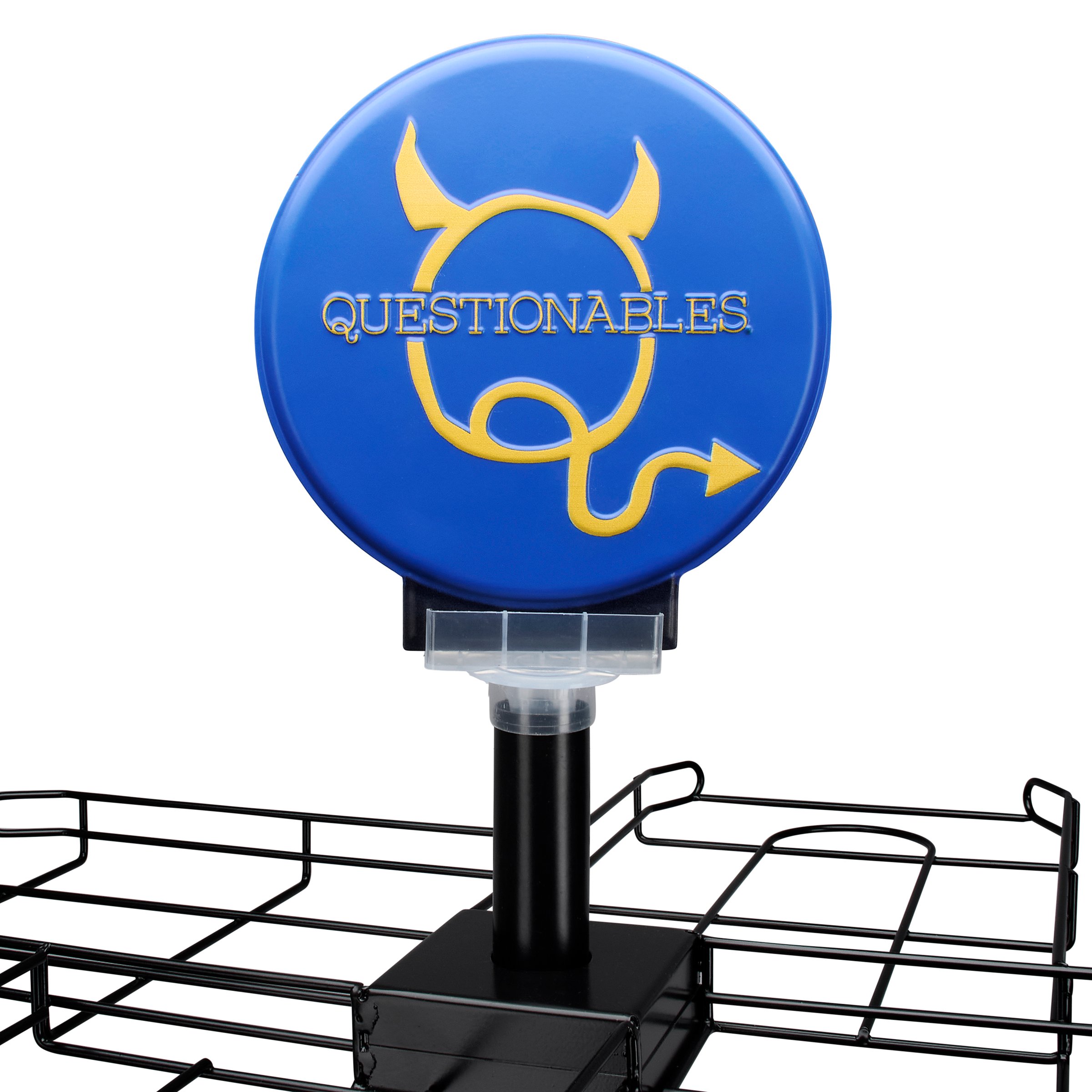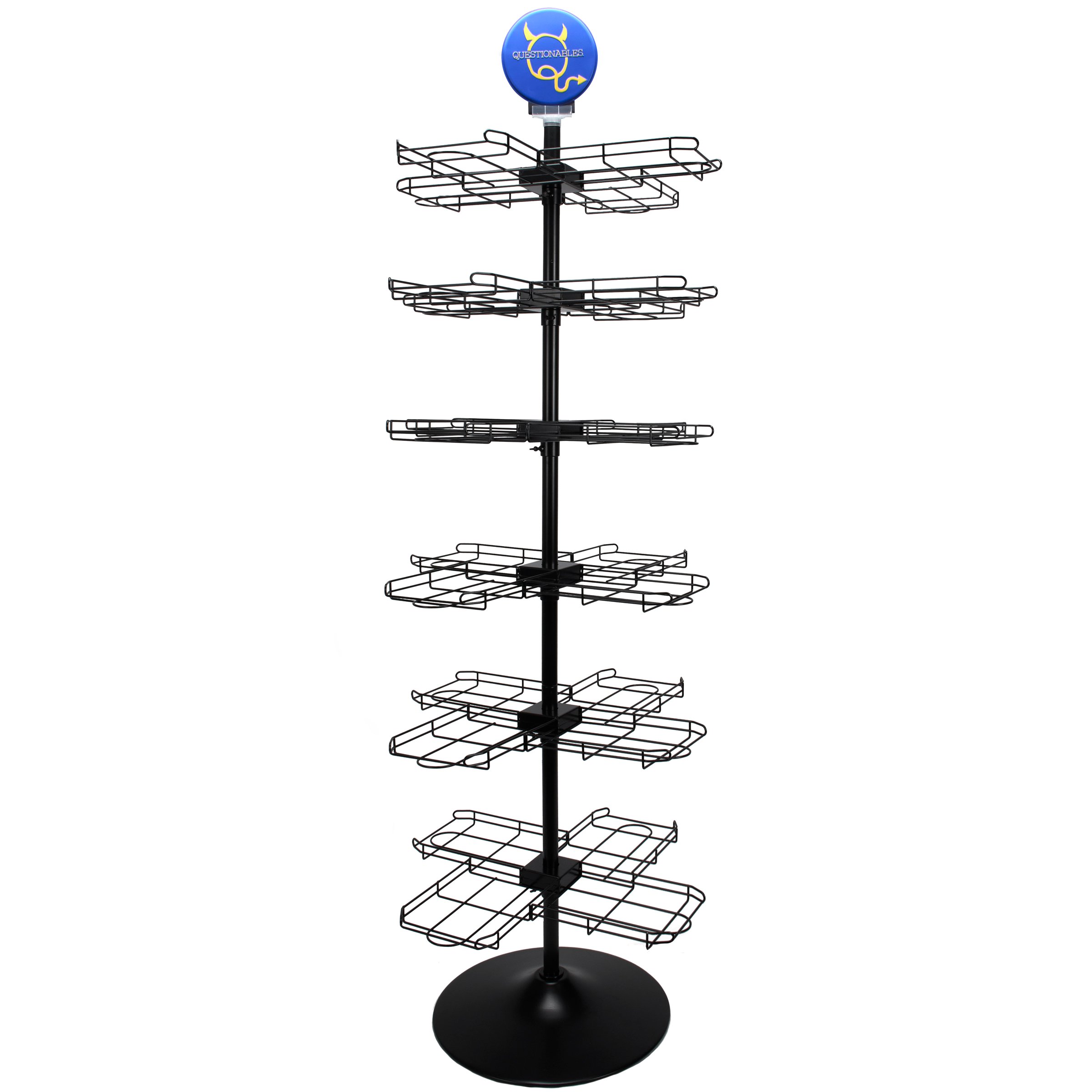 Want to build you own story? Our metal display racks give you more options to improve your customer experience and make the most out of your store space. At just 26 inches of floor space, this Questionables baseball cap store display features a space saving size with easy to shop spinning racks that can showcase up to 24 designs and hold approximately 144 hats in total. Store display rack includes a premium double-sided brand sign with the option to place or remove on the top slot. We also include free product to offset your rack purchase and get your display started. Average retail value of free hats is $300. A versatile baseball cap floor rack that helps you save store space and enhance product displays. Not eligible for discounting.