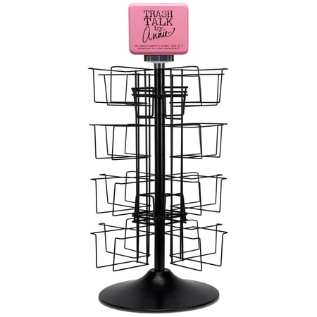 Want to build you own story? Our metal display racks give you more options to improve your customer experience and make the most out of your store space. At just 9.75 inches of counter space, this Trash Talk by Annie beverage napkin countertop display features a space saving size with an easy to shop spinning rack that can showcase up to 16 designs and hold approximately 112 napkin sets in total. Store display rack includes a premium double-sided brand sign with the option to place or remove on the top slot. We also include free product to offset your rack purchase and get your display started. Average retail value of free beverage napkins cards is $120. A versatile beverage napkin countertop rack that makes it easy to shop a variety of designs near the checkout or on store displays. Not eligible for discounting.