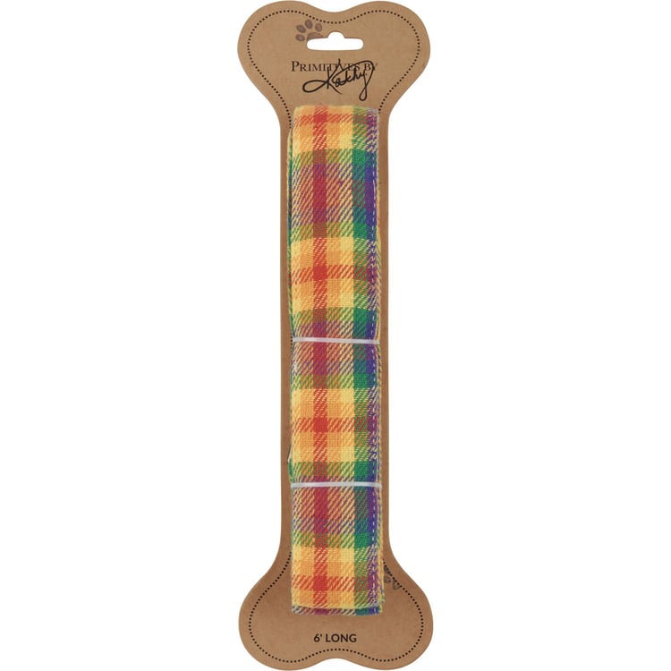 A dog leash from our Pride Collection that displays a double-sided plaid design using the color palette of the pride flag. Design coordinates well with our other pride plaid accessories for a fun matching day out. Our Pride Plaid dog leash is packaged on a cardboard hanger with hole for easy display on rack. Leash is 72 inches in length. A portion of the proceeds from the sale of this Benefit Item will be donated to Lancaster LGBTQ+ Coalition to support their commitment to building a more inclusive Lancaster County abundant in opportunities for LGBTQQIA+ individuals.