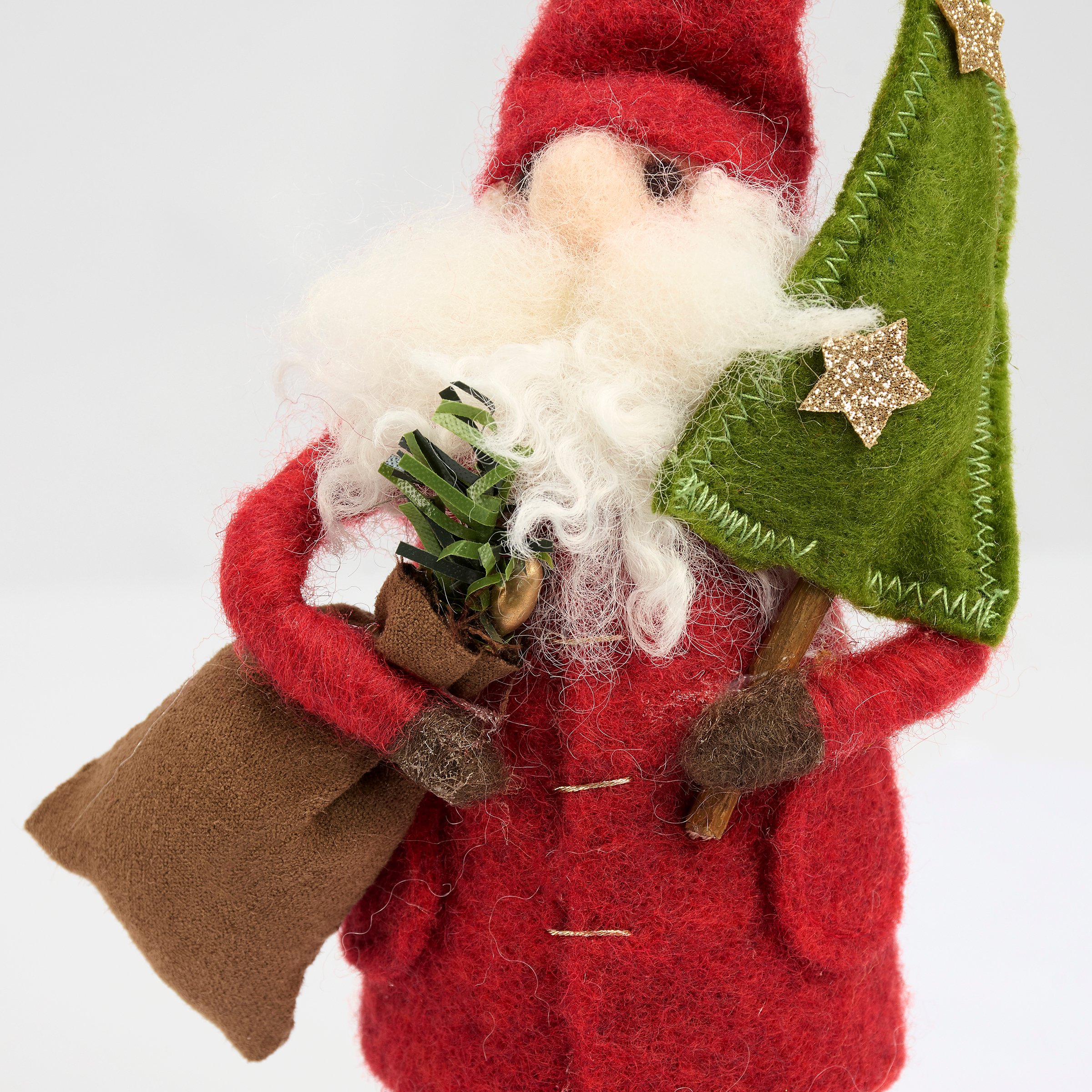 A felt critter from our Christmas Collection displaying a fun Santa design with him holding items to decorate for Christmas perfect for adding character to any seasonal display. Santa critter features cute handmade details including stitched details and glitter star accents on the tree. Our Decorator Santa critter is designed to free-stand on flat surface for display. Contains small parts; this is not a toy. A fun Christmas home accent that displays well alone or as a collection with other critters.
