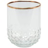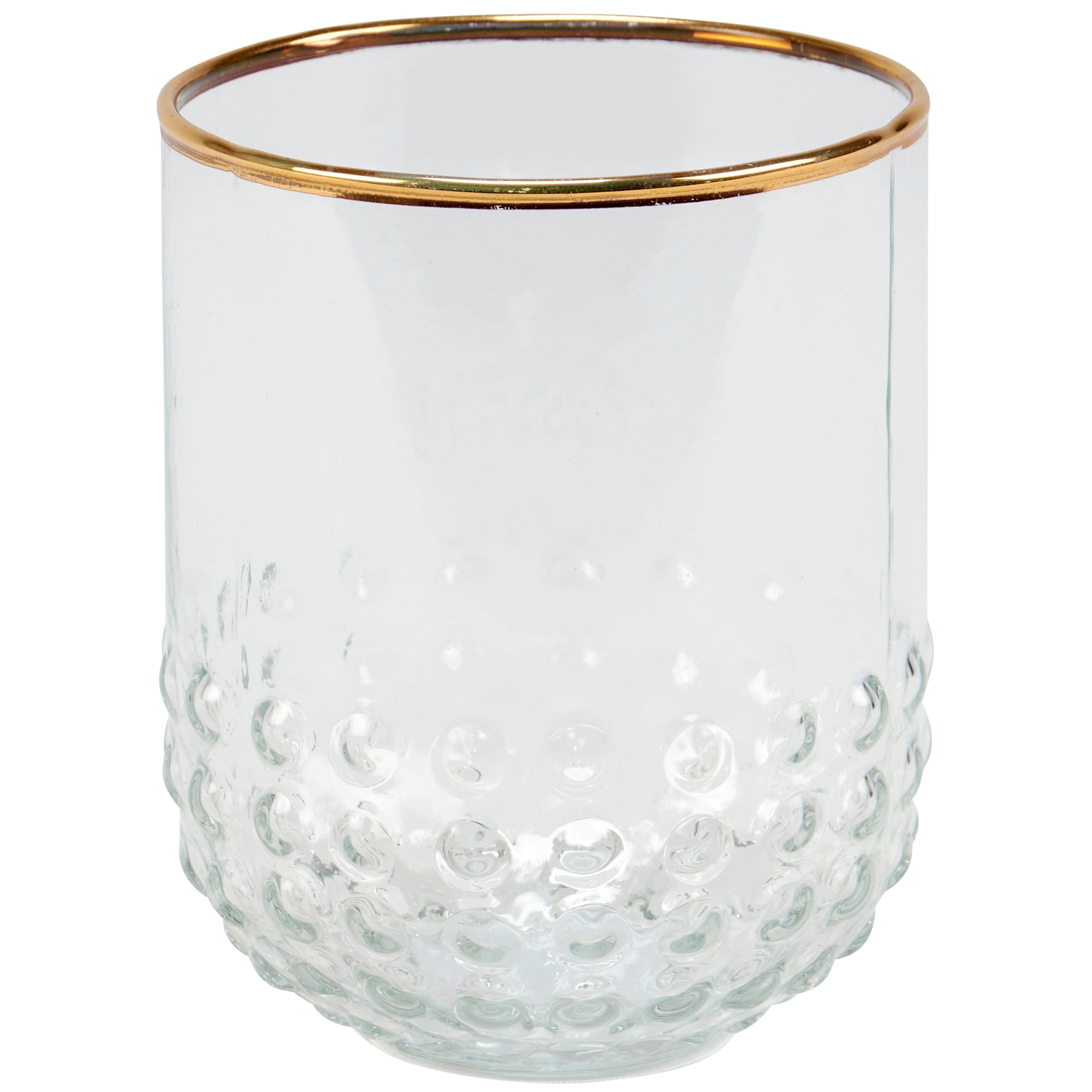 A 20 oz drinking glass displaying a stylish design with a beaded texture at the bottom and metallic gold accent along the rim. Our Small Gold Beaded drinking glass coordinates well with drinkware from ourĀ Art Deco Collection. Drinking glass is conveniently dishwasher safe for easy cleaning. A piece of stylish drinkware perfect for everyday gatherings.