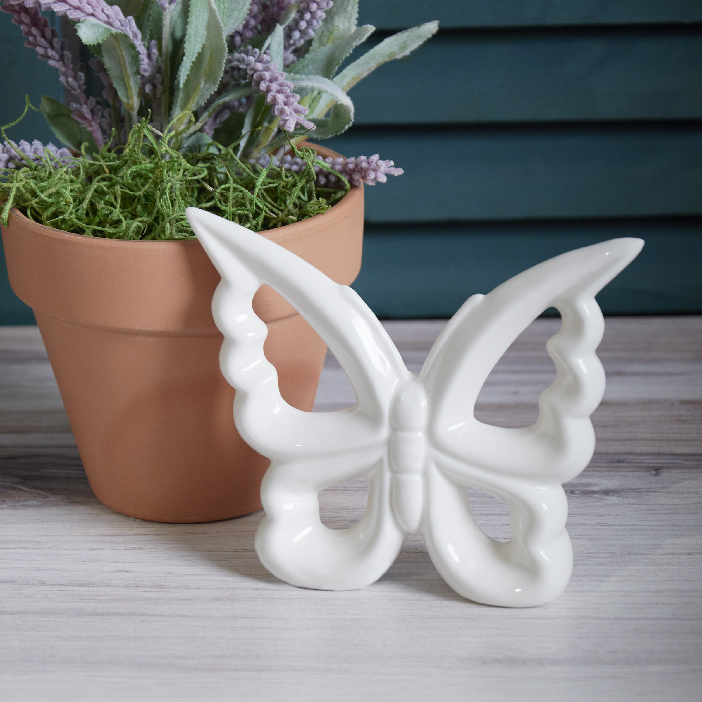 A stoneware figurine from our Easter & Spring Collection displaying a sculpted butterfly with dimensional details. Butterfly figurine features clean white design that easily blends with a variety of colors and styles. Our Butterfly figurine is ideal for a home accent and complements well with other pieces in the collection to create a cohesive display.