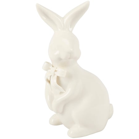 A stoneware figurine from our Easter & Spring Collection displaying a cute bunny in a sitting pose with a pretty bow accent. Bunny figurine features a clean white design that easily blends with a variety of colors and styles when Easter decorating. Our Ceramic Bunny figurine is ideal for a spring home accent and complements well with other pieces in the collection to create a cohesive display.
