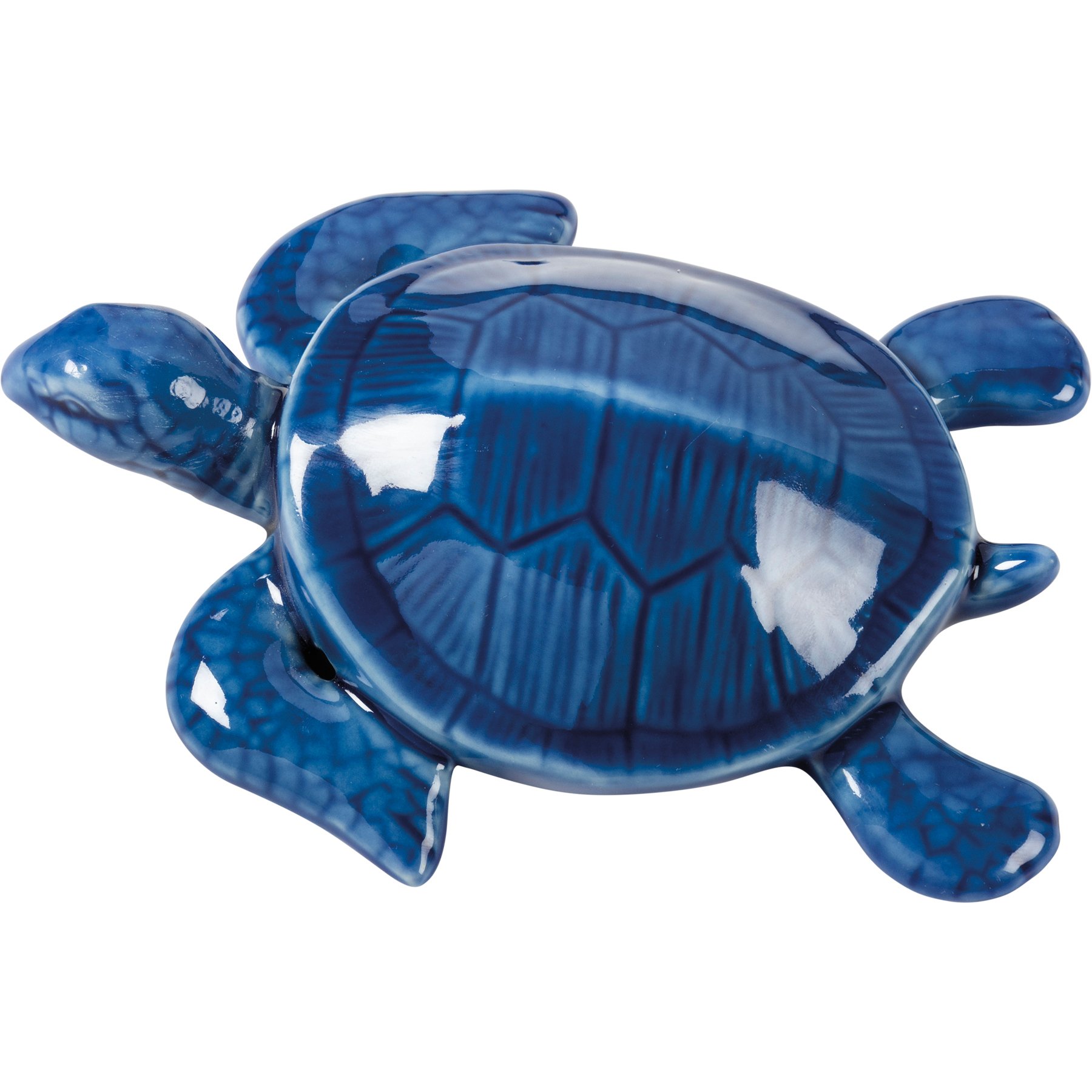 This large, blue stoneware sea turtle figurine from our Beach Collection makes a perfect home or garden accent. Complements well with other pieces in the collection to create a cohesive display.