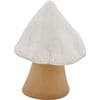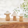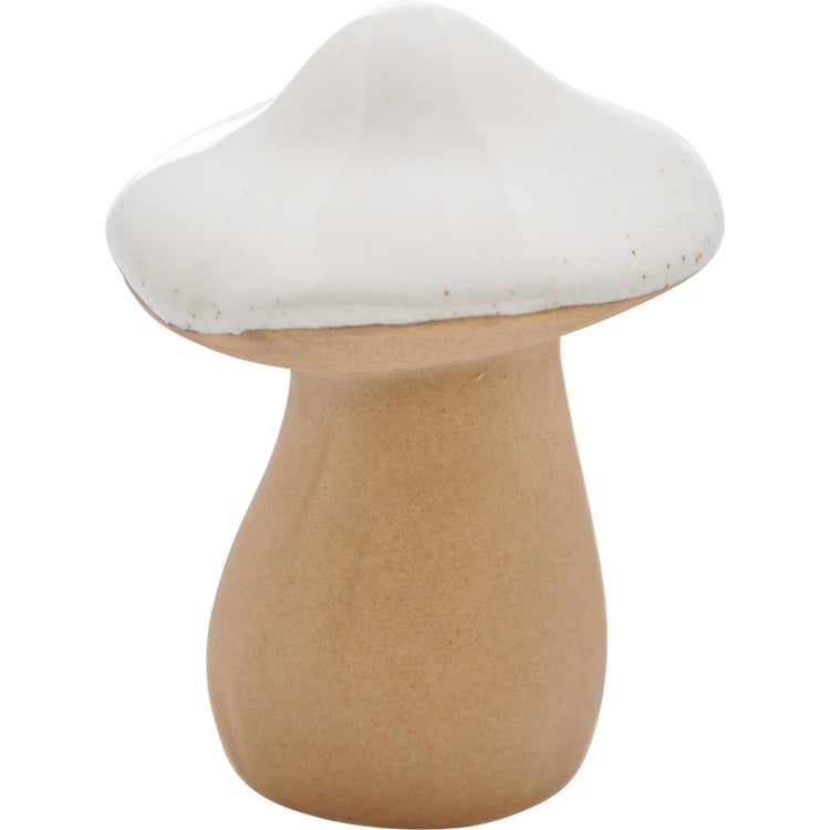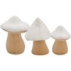 A set of three decorative mushrooms displaying bare ceramic with a white glaze finish on tops. Figurines feature various sizes and shapes. Our Cone Mushrooms figurine set is a perfect home or garden accent and complements well with other pieces in the collection to create a cohesive display. Coordinates well with décor from our Cottagecore Collection.