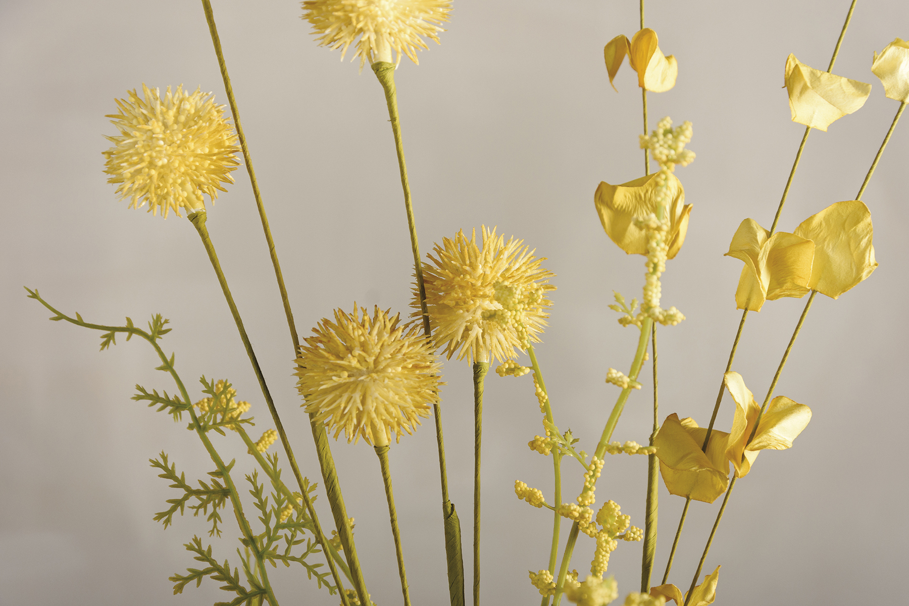 A yellow mixed floral pick that's perfect for any vessel any time of year.