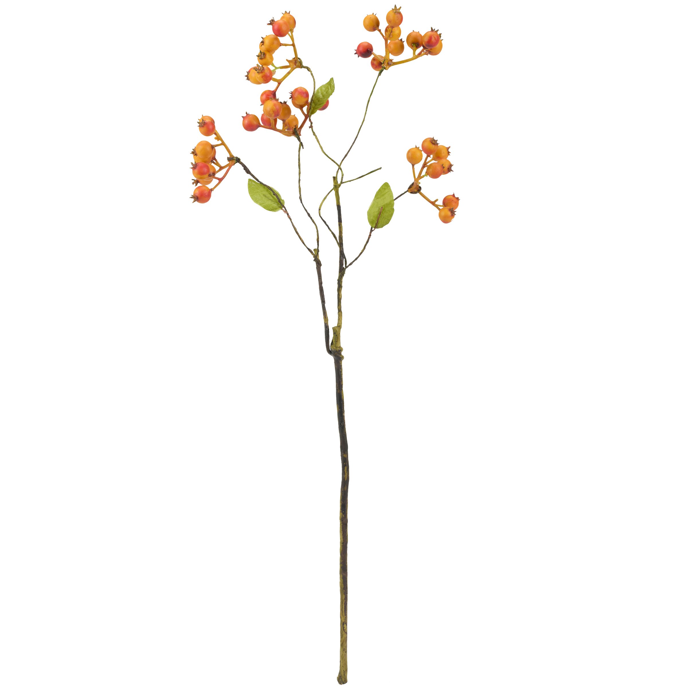 A pick of orange currant with complementing greenery perfect for adding to any vessel. Faux plants bring botanical vibes to any space with zero maintenance. Pair with other faux botanicals to create a rich, natural display without the worry of withering away. Our Orange Currant floral pick stands 18 inches tall and complements well with décor from our Botanical Collection.