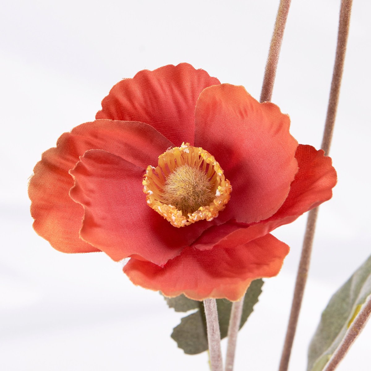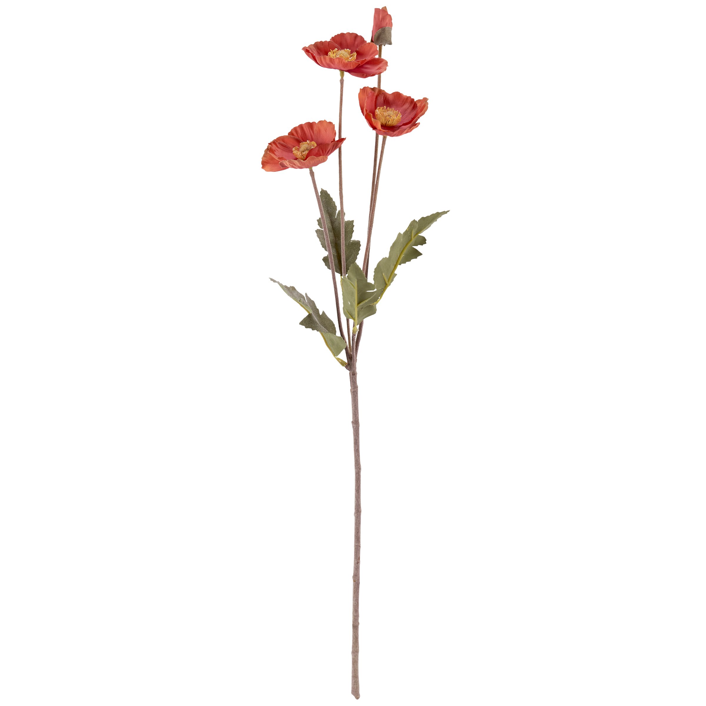 A pick of orange poppy with complementing greenery perfect for adding to any vessel. Faux plants bring botanical vibes to any space with zero maintenance. Pair with other faux botanicals to create a rich, natural display without the worry of withering away. Our Orange Poppy floral pick stands 22.75 inches tall and complements well with décor from our Cottagecore Collection.