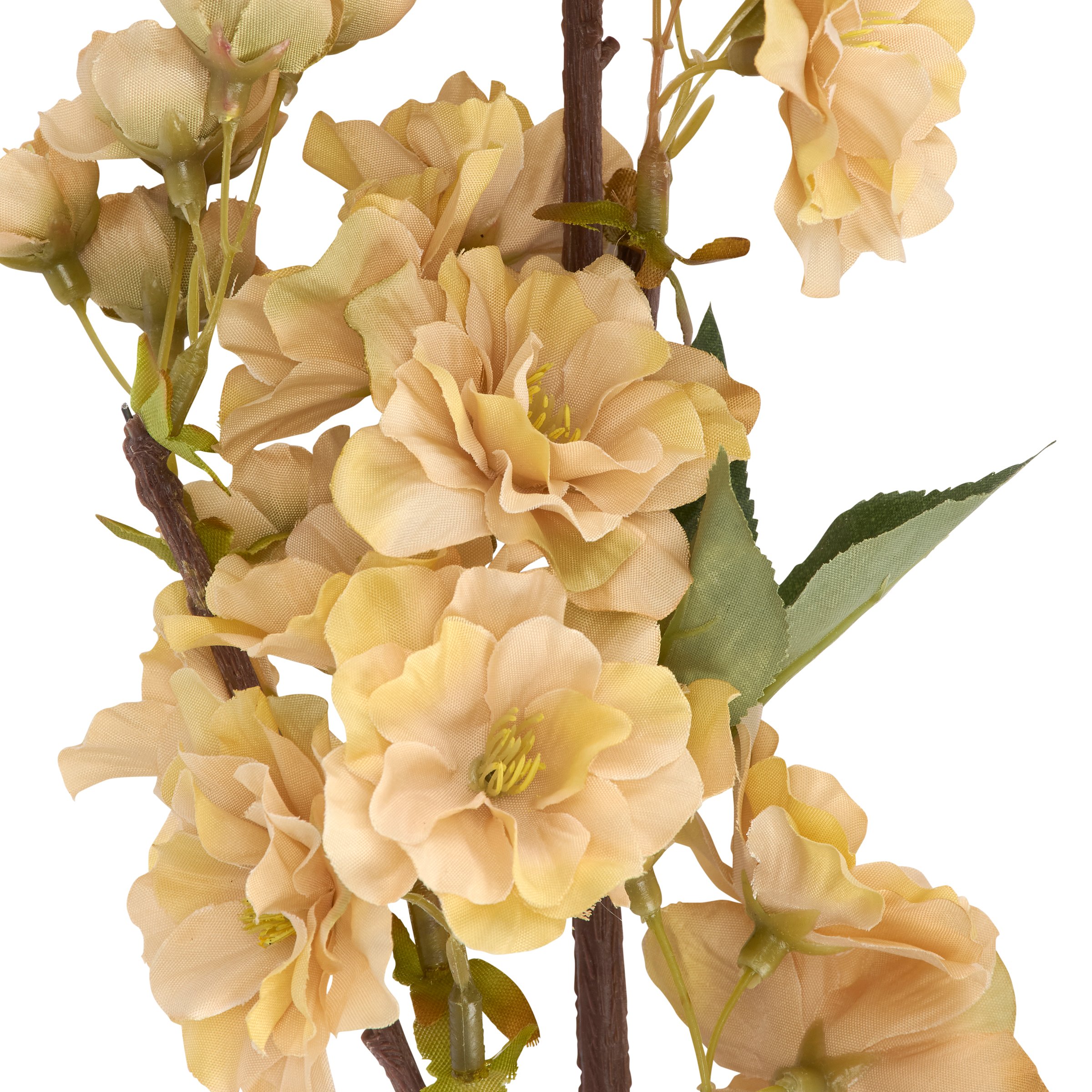 A pick of peach cherry blossoms perfect for adding to any vessel. Faux plants bring botanical vibes to any space with zero maintenance. Pair with other faux botanicals to create a rich, natural display without the worry of withering away. Our Peach Cherry Blossoms floral pick stands 19.25 inches tall and complements well with décor from our Cottagecore Collection.