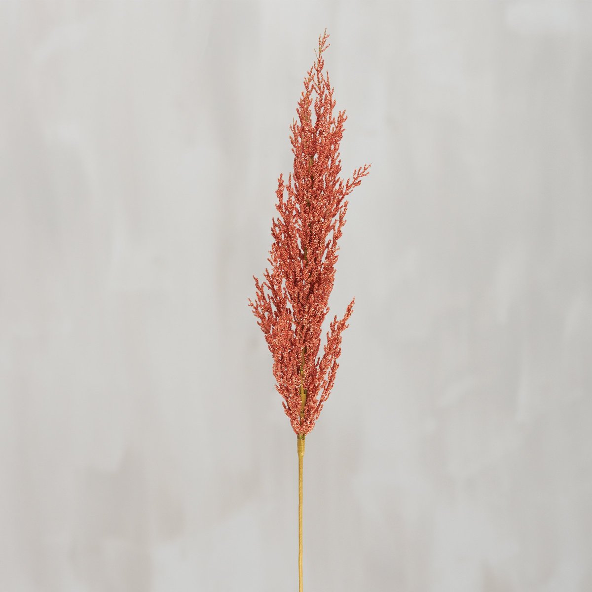 A pick of pampas grass in a rust inspired color perfect for adding to a seasonal vessel. Faux plants bring botanical vibes to any space with zero maintenance. Pair with other faux botanicals to create a rich, natural display without the worry of withering away. Our Rust Pampas Grass floral pick stands 35.50 inches tall and complements well with décor from our Fall & Harvest Collection.