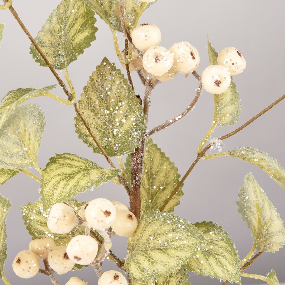 A winter greenery pick of snowberries with glitter accents for a frosty finish perfect for adding to a seasonal vessel. Faux plants bring botanical vibes to any space with zero maintenance. Pair with other faux botanicals to create a rich, natural display without the worry of withering away. Our Snowberry pick stands 19 inches tall and complements well with décor from our Christmas Collection.