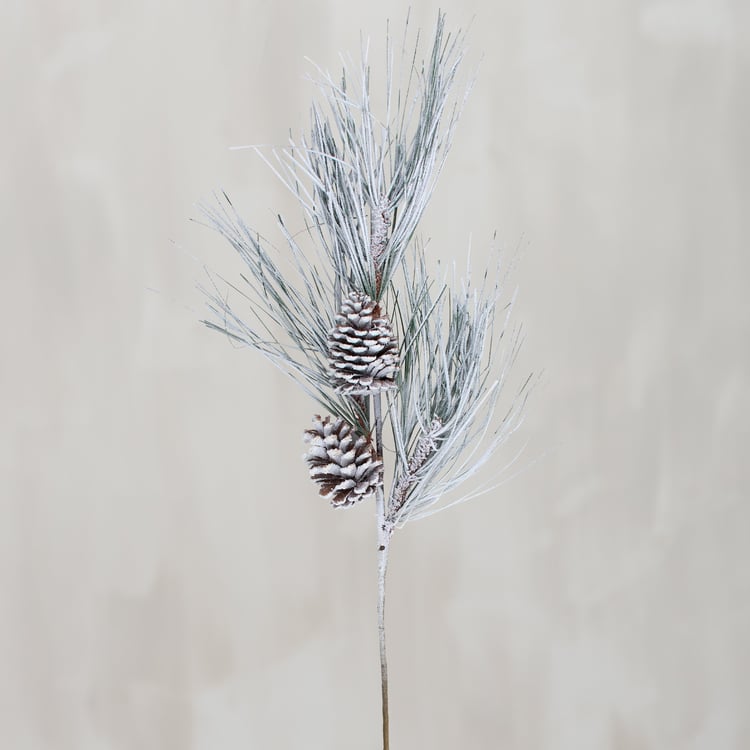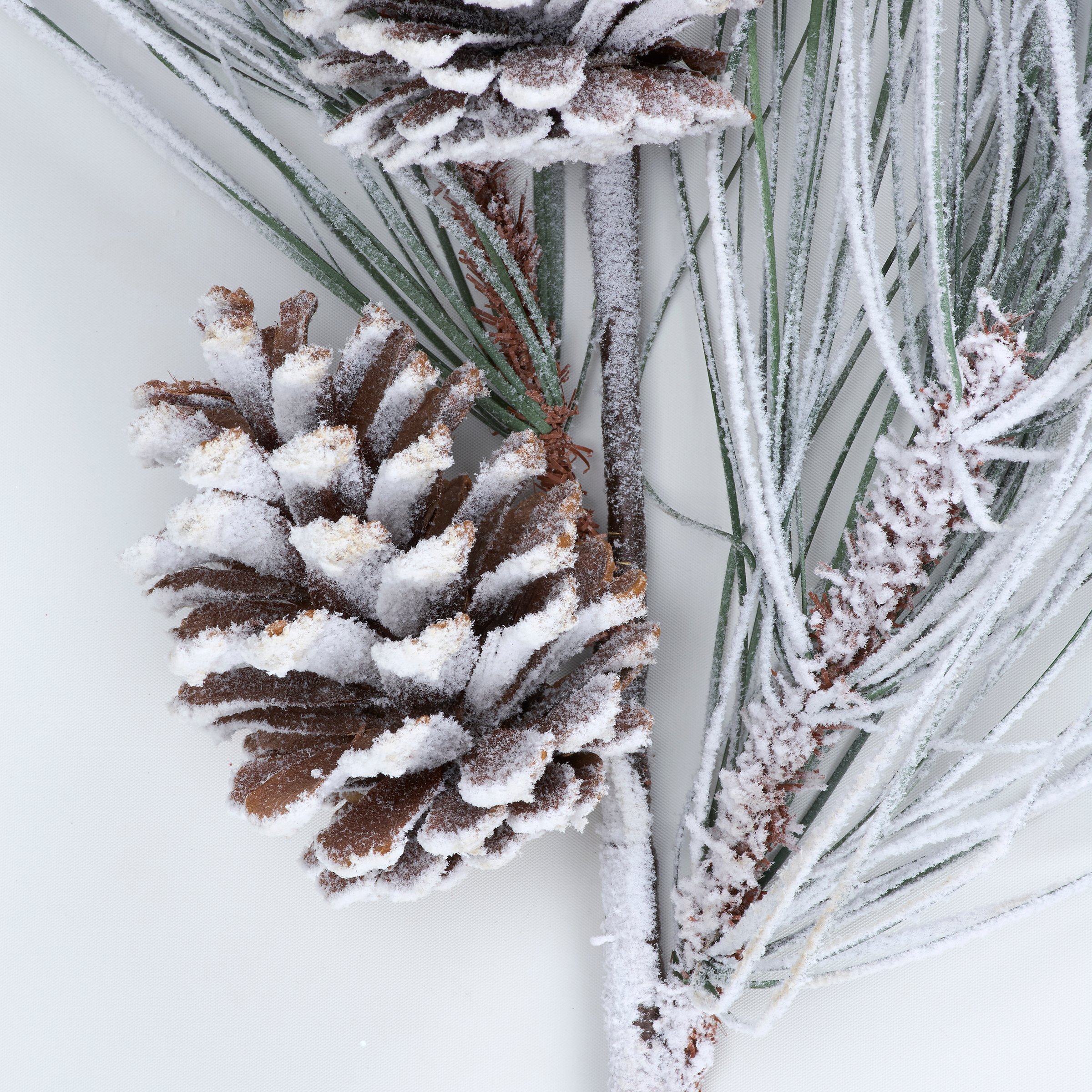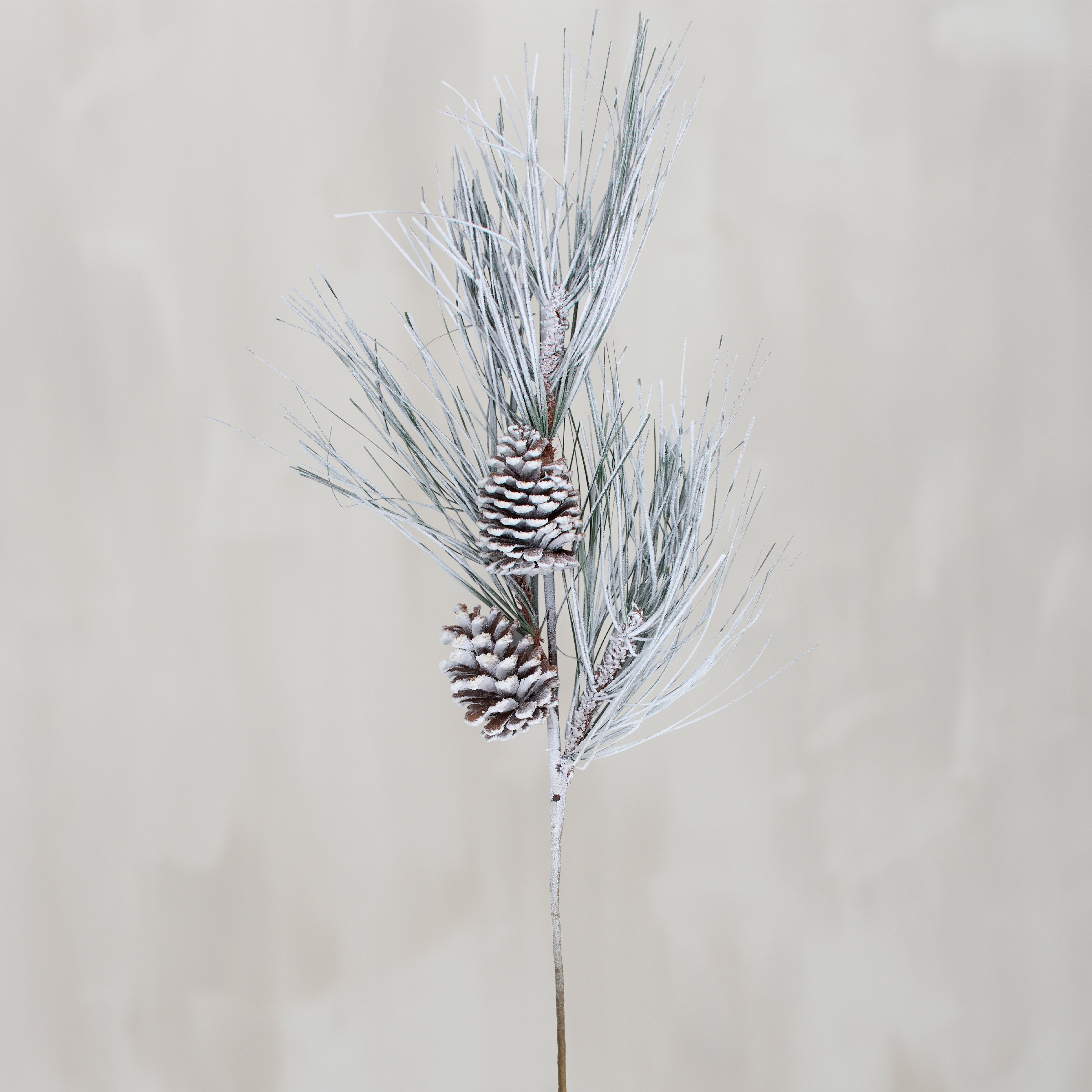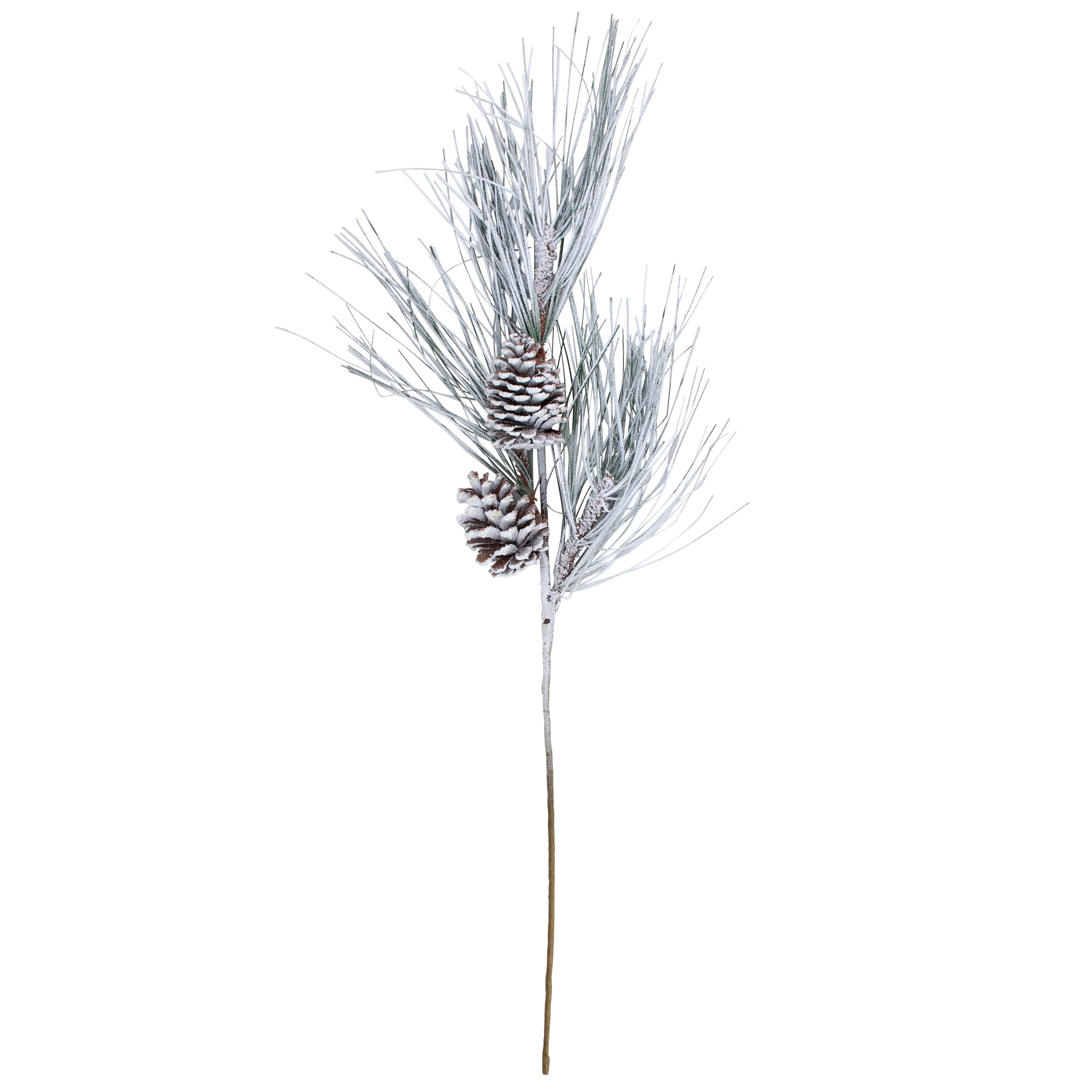 A pick of pine featuring pinecone accents and a flocking finish for a snowy effect that is perfect for adding to any vessel. Faux greenery brings natural vibes to any space with zero maintenance. Pair with other faux botanicals to create a rich, natural display without the worry of withering away. Our Snowy Pine Spray pick stands 17 inches tall and complements well with décor from our Christmas Collection. A botanical home accent with a variety of seasonal display options.