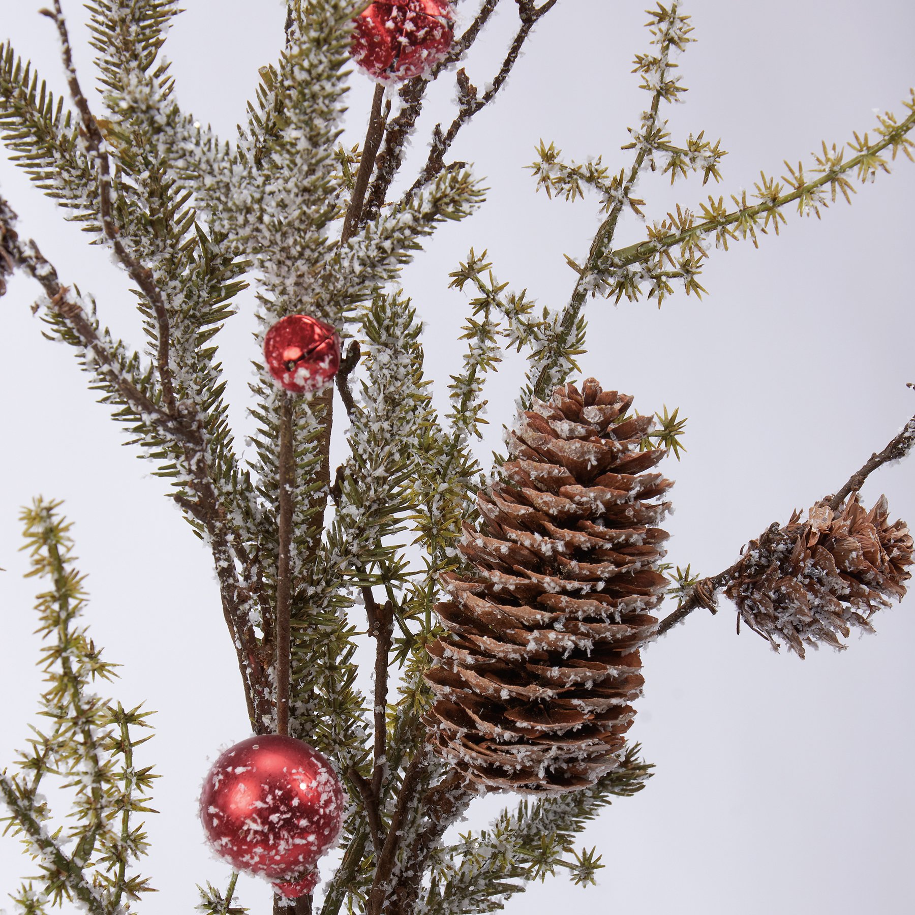 A sugared pine pick, perfect for any vessel or part of a table set, all throughout the winter season. Complements well with the woodland décor from our Christmas Collection. California Residents see Prop 65 Notice.