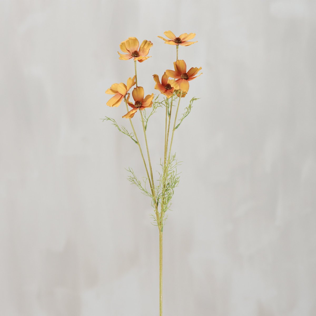 A pick of yellow cosmos flowers perfect for adding to any vessel. Faux plants bring botanical vibes to any space with zero maintenance. Pair with other faux botanicals to create a rich, natural display without the worry of withering away. Our Yellow Cosmos pick stands 30 inches tall and complements well with décor from our Botanical Collection.