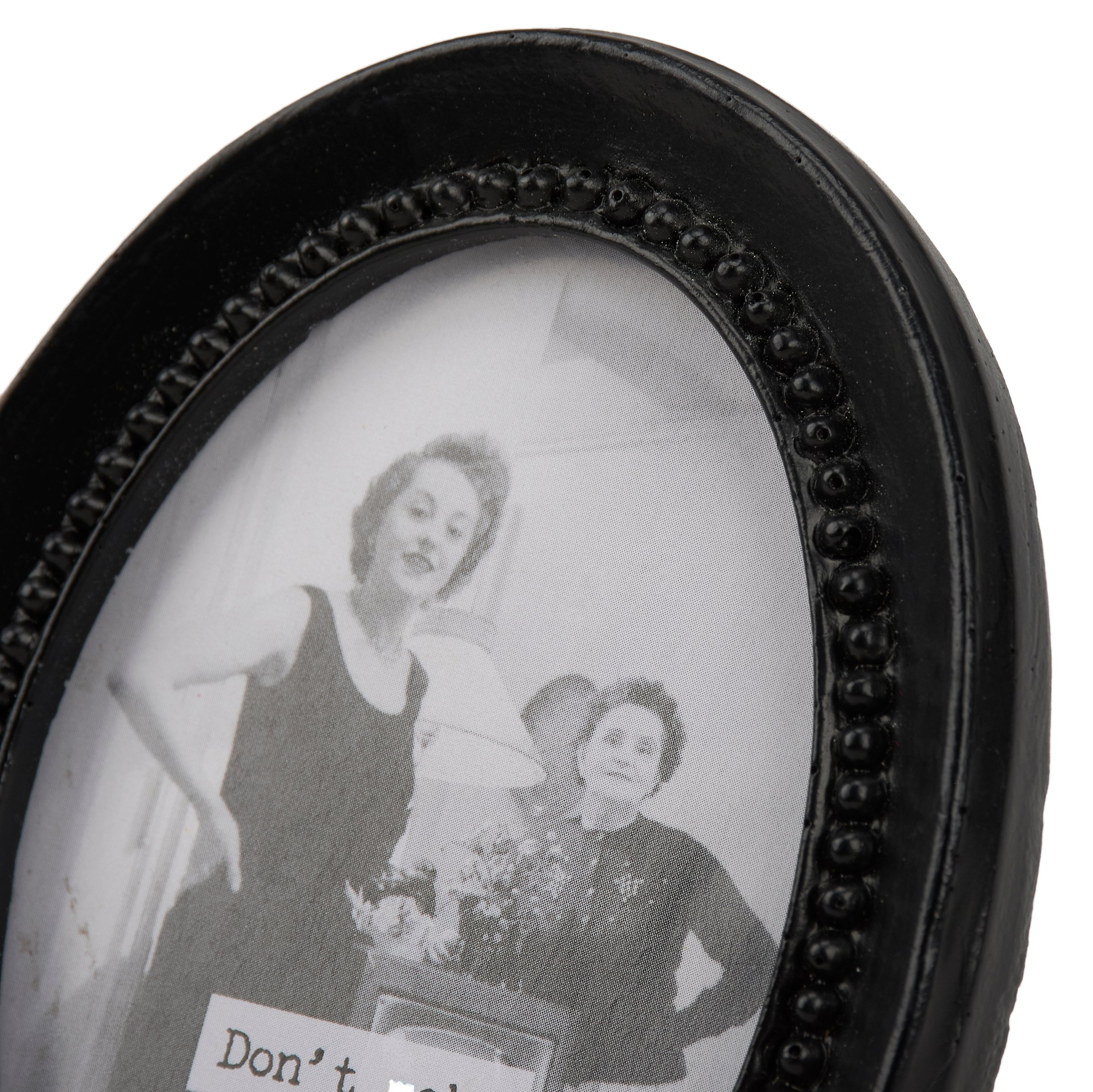 A small framed art piece from our Trash Talk By Annie Collection displaying a fun black and white photograph complemented with a sassy sentiment that reads "Don't Make Me Act Like My Mama." Photo and sentiment is displayed inside a sculpted frame to complete the vintage style. Our Don't Make Me Act Like My Mama framed art is easy to display using the attached easel to free-stand. A sassy vintage home accent that easily blends into a display adding personality to any home or work space.