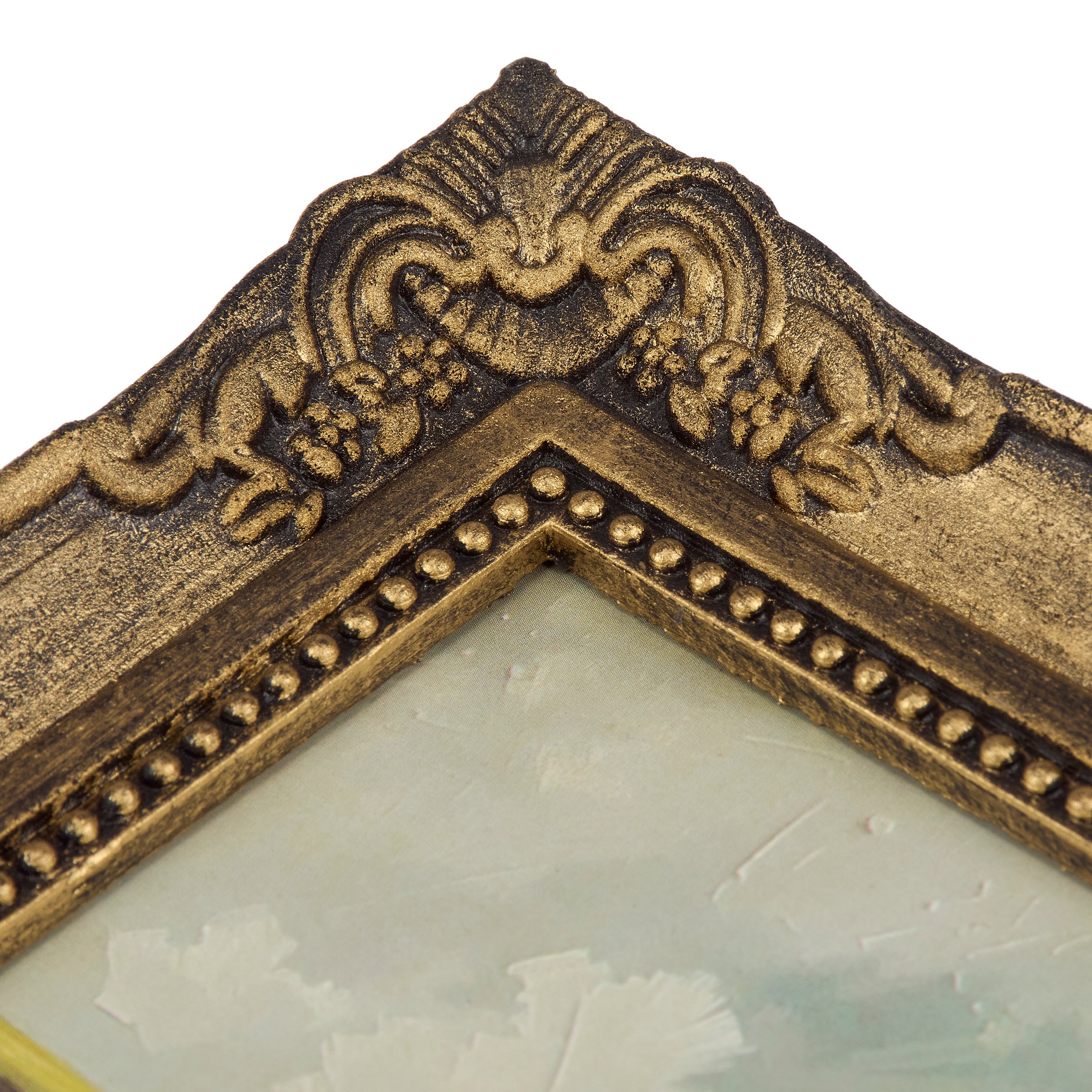 A framed art piece from our St. Patrick's Day Collection displaying vintage are of a coast and cliffs in Ireland. Frame features an ornate design with metallic antique wash for a vintage style. Our framed Irish Coast wall art is ready to hang for display via attached sawtooth hanger on the back. A vintage St. Patrick's Day home accent perfect for seasonal display.