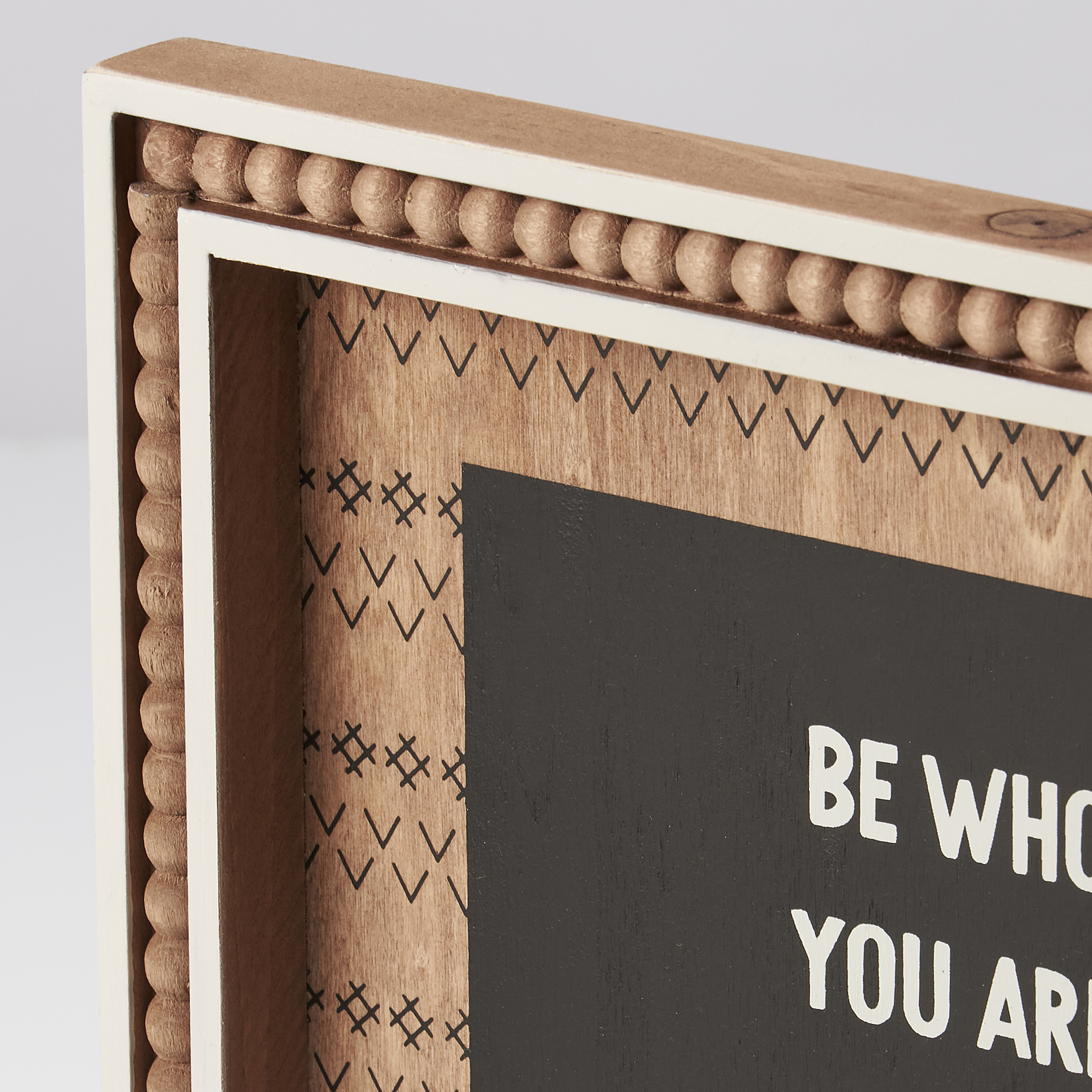 A wooden framed décor piece from our Bohemian Collection displaying a neutral color palette and inset frame design. Design features wooden beads in between frames and bohemian inspired pattern behind inspirational sentiment that reads "Be Who You Are - Do What You Love - Go Where Your Heart Leads You." Our What You Love framed wall art is easy to hang via attached sawtooth hanger. An inspirational everyday home accent that easily blends with a variety of home décor.