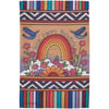 A double-sided polyester garden flag from our Wood Burning Collection displaying a colorful design of a rainbow, flowers, and birds with complementing geometric patterns and an inspirational sentiment that reads "Think Happy Thoughts." Design is replicated from original hand illustrated art with wood burned details. Garden flag is weather-resistant and features an opening to hang on our Garden Flag Pole. Our Happy Thoughts garden flag is packaged with a header card and hook to easily hang on rack. Hand wash only. An inspirational home accent perfect for everyday display in any yard or garden.