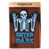A double-sided polyester garden flag from our Halloween Collection displaying a hand illustrated neon design of a spooky skeleton with a fun Halloween-themed sentiment that reads "Enter If You Dare." Design and sentiment are replicated from original hand illustrated artwork in a fun neon color palette that also looks great in blacklight. Garden flag is weather-resistant and features an opening to hang on our Garden Flag Pole. Our If You Dare garden flag is packaged with a header card and hook to easily hang on rack. Hand wash only. A fun Halloween home accent perfect for seasonal display in any yard or garden.