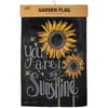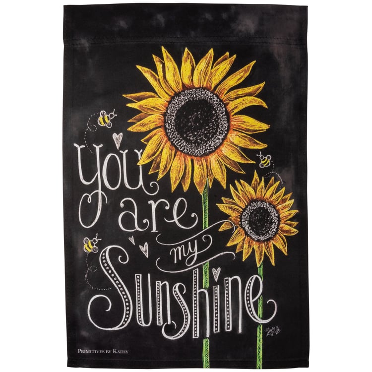 A double-sided polyester garden flag featuring a chalk art sunflower design and "You Are My Sunshine" sentiment. Garden flags are weather-resistant and feature an opening to hang on our Garden Flag Pole. Hand-wash only.