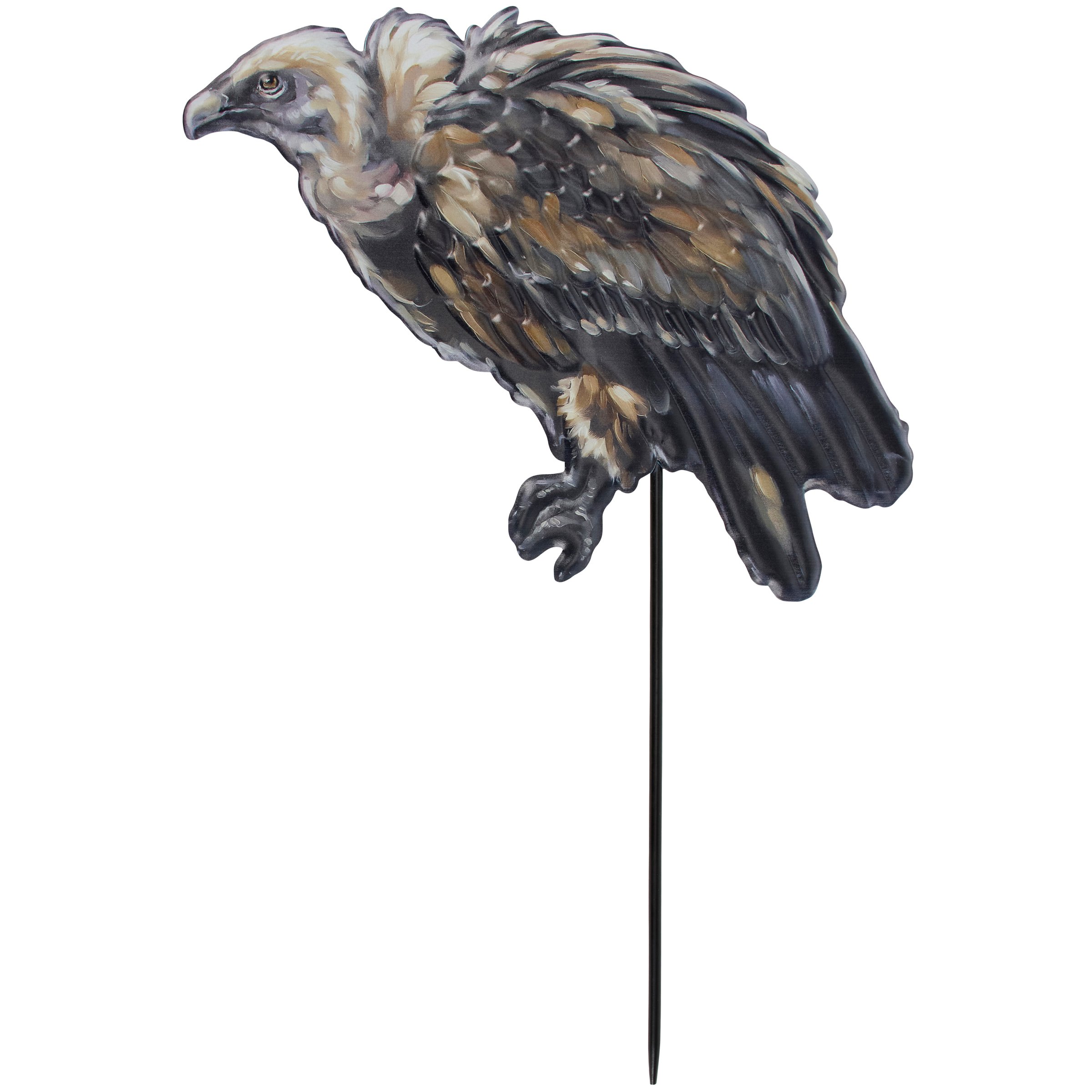 A decorative metal pick from our Halloween Collection featuring a metal cutout piece in the shape of the displayed vulture art that is attached to a black metal stake. Moody vulture design also features embossed details for added dimension. Our Night Vulture garden pick is over 19 inches tall to easily stand out in a garden or yard. A Halloween garden accent perfect for adding seasonal style to any outdoor display.