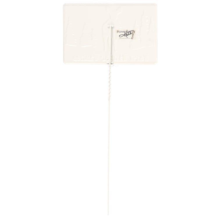 A metal garden pick from our Christmas Collection displaying a charming winter scene of a deer wearing a holiday wreath with embossed details and seasonal sentiment that reads "Warm Winter Wishes." Winter deer design is replicated from original artwork painted onto burlap canvas, giving the art a unique depth and texture. Our Warm Winter Wishes garden pick includes a 15 inch stake to easily stand out in a garden or yard. A rustic Christmas home accent perfect for seasonal display.