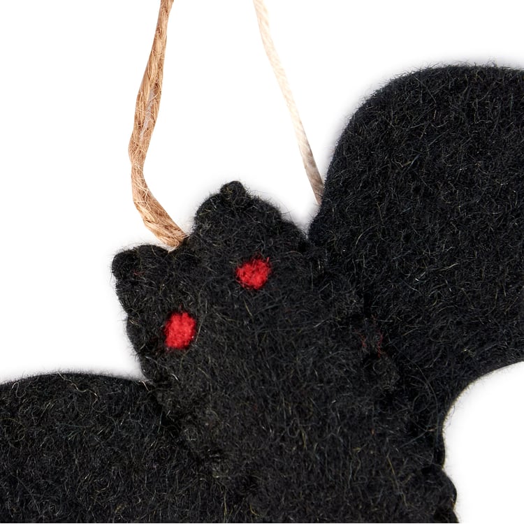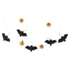 A decorative garland from our Halloween Collection displaying stuffed felt bats and pumpkins along a thin string. Garland features rope loops at each end. Our Bats And Pumpkins garland includes 72 inches of length for plenty of coverage and is easy to hang via rope loops. A seasonal home accent with a variety of display options.