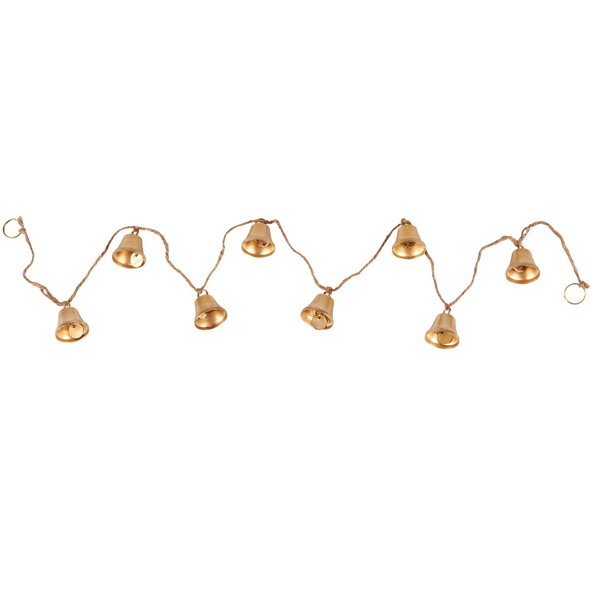 A decorative garland from our Christmas Collection displaying a vintage design of eight decorative metal bells hanging along a jute rope. Garland features metal rings at each end. Our Bells garland includes 48 inches of length for plenty of coverage and is easy to hang via metal rings. A seasonal home accent with a variety of display options.