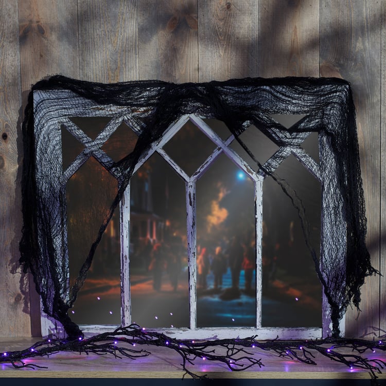 A decorative piece of black gauze cloth that coordinates well with décor from our Halloween Collection. Decorative cloth is ideal for adding a finishing touch to seasonal home décor display, DIY projects, and more. Our Black gauze cloth features a 72 inches by 30 inches size for plenty of coverage. Cloth comes packaged in a polybag with header card. A rustic home accent perfect for seasonal display.