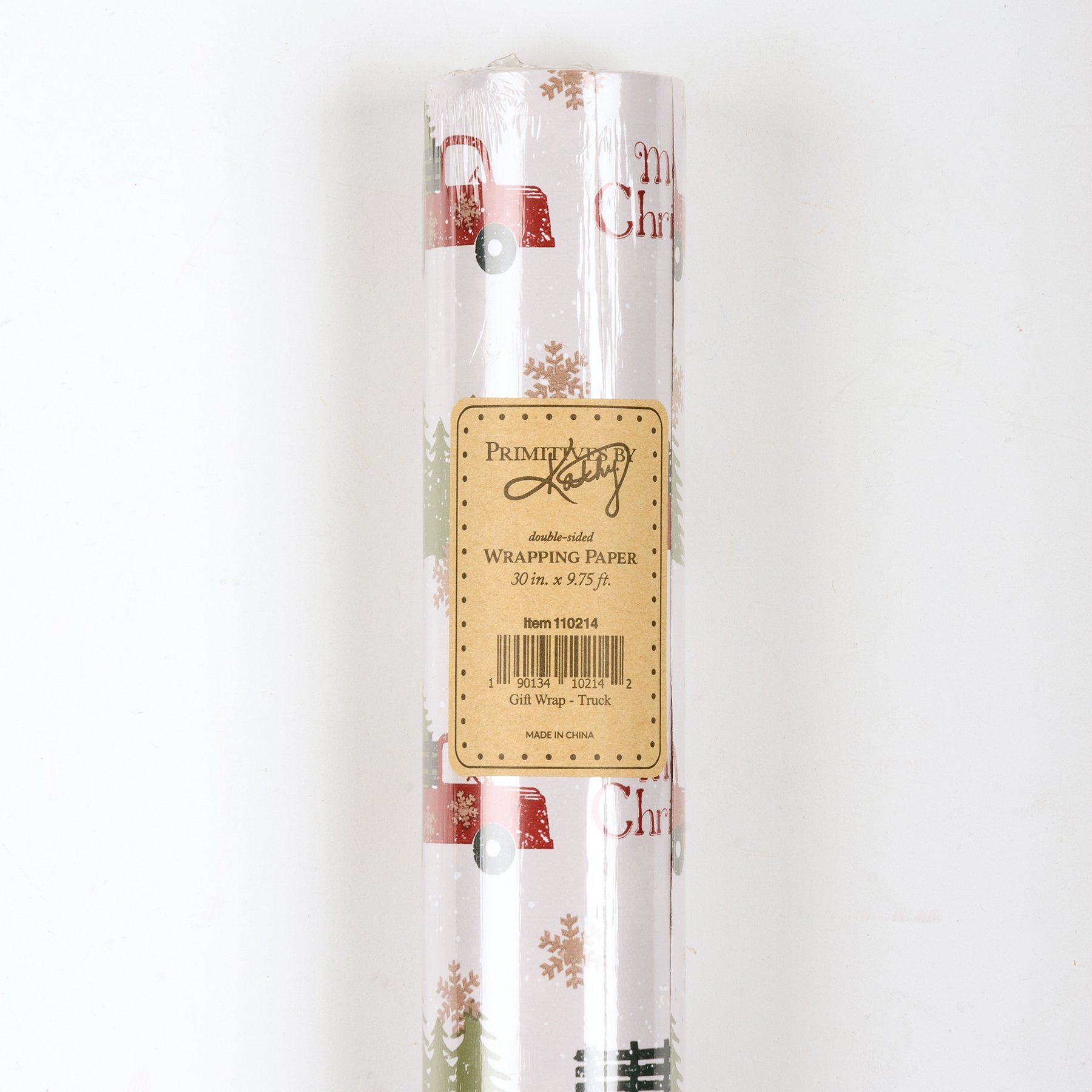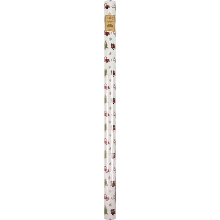 A roll of double-sided gift wrap from our Christmas Collection features holiday-inspired truck and tree designs with "Merry Christmas" sentiment. Our Truck gift wrap roll is 9.75' long ( 3.3 yards).