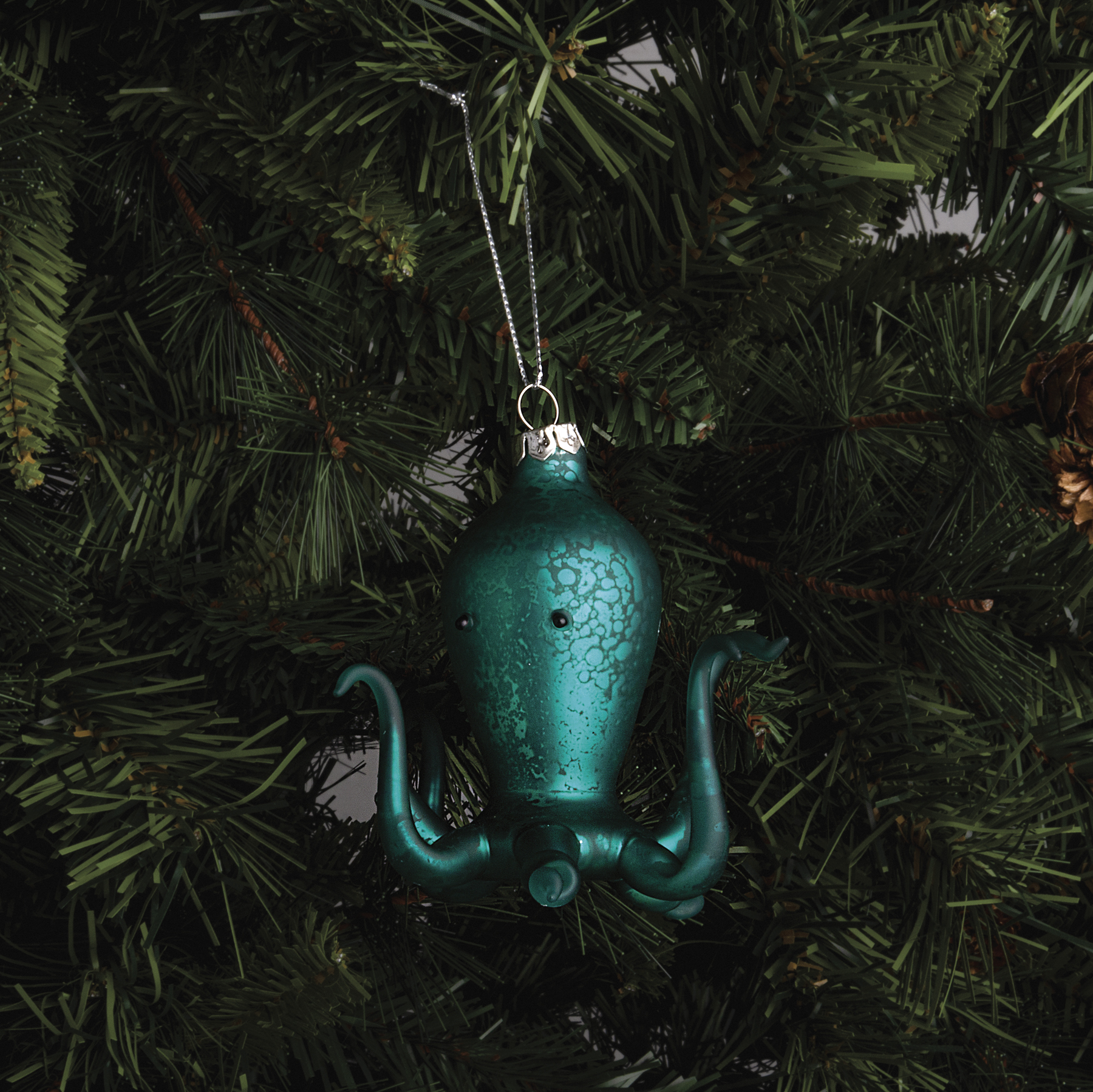 A vintage - inspired glass octopus Christmas ornament from our Beach Collection that's perfect for a beach-themed Christmas or to gift. Contains metal topper with loop for easy hanging and decorating with this octopus ornament.
